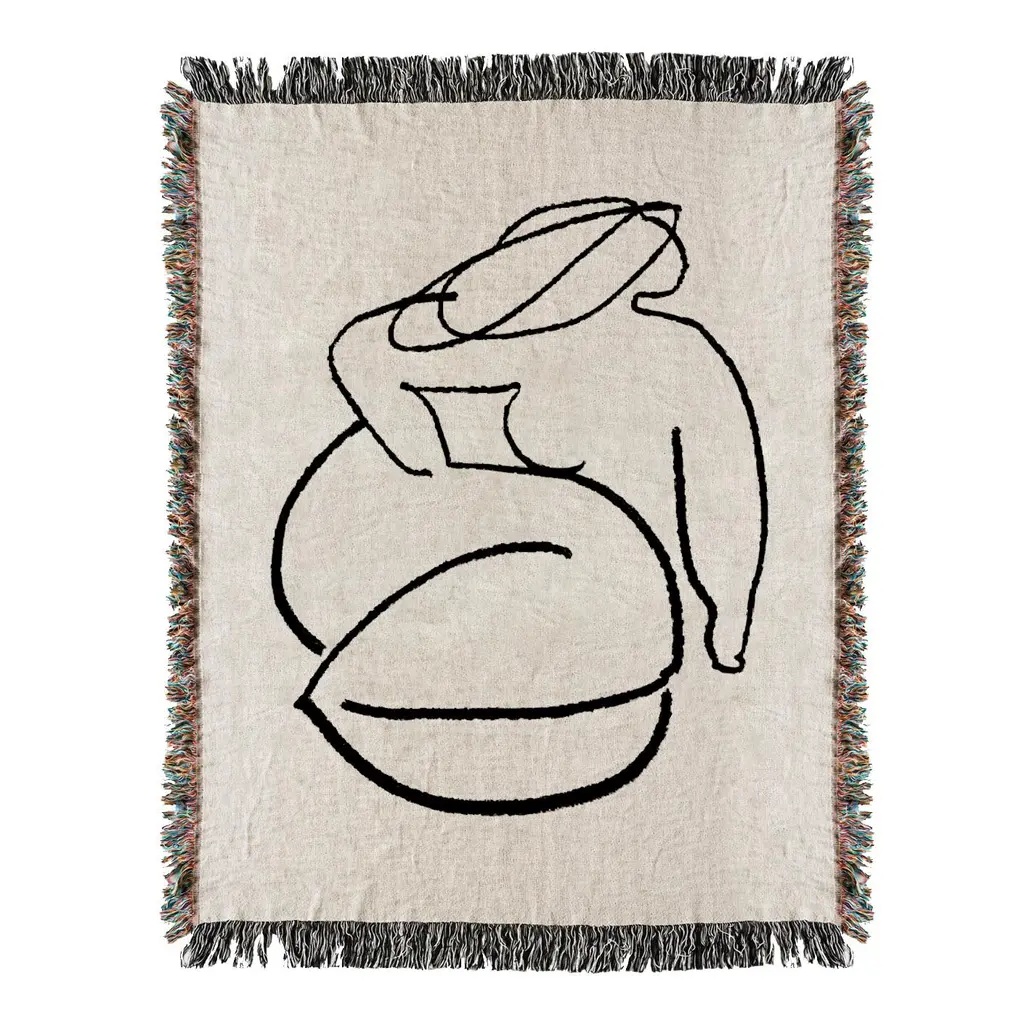 Woven throw blanket, 50"x60" (127x152cm) Abstract female figure illustration on natural light beige background. Our premium natural cotton throws are lightweight and super soft to touch, beautifully textured and wonderfully cosy. Contemporary abstract print will fit any modern interior. Perfect housewarming gift for a living room or bedroom decoration. - Woven in the USA. - Odour and stain resistant - Hypoallergenic, machine washable and low maintenance Made from 100% cotton, our throw boast the finest quality yarn stitched in a thermal weave to create a breathable, luxurious finish. Perfect for bed or couch, this classic blanket adds a great finishing touch to any interior. NOTE! Slight color variation between the product image shown and final product may be possible due to the variance in threads utilised in the weaving. CARE INSTRUCTIONS: Machine washable in mild detergent at 30°C. Do not bleach or tumble dry.