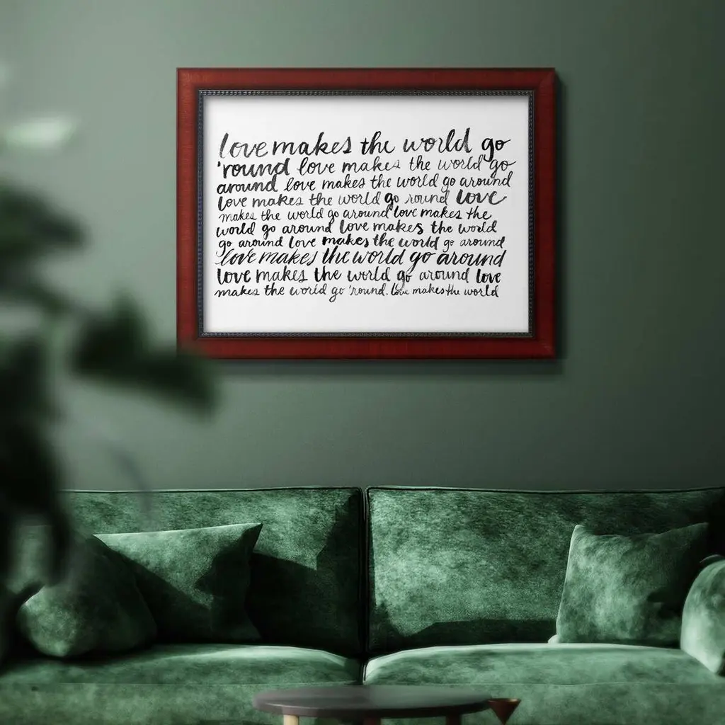 Writing with Love II Premium Framed Canvas- Ready to Hang A Premium Framed Canvas created to last. Framed in distressed wood and available in an array of sizes and colors Featuring a beveled a solid wood stretcher bar, each piece comes ready to hand 3 SIZES AVAILABLE 16''X20'' - Overall Size 18'X27'' - Overall Size 24''x36'' - Overall Size Each piece is made to order. Each piece comes with hanging hardware. Made in the USA Ready to Hang Giclee Paper Print Acrylic Glass Beveled Matt Board