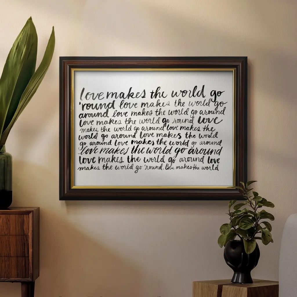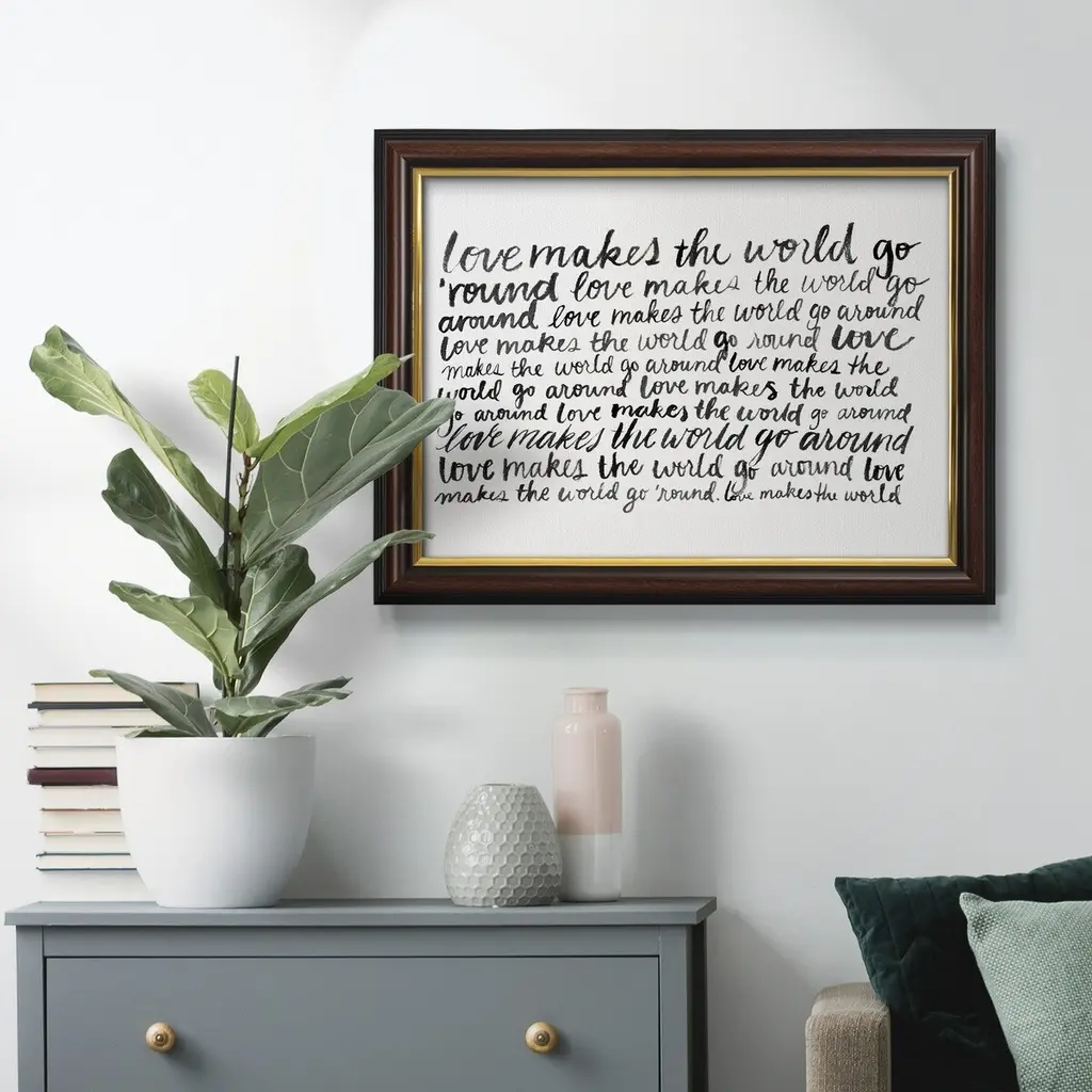 Writing with Love II Premium Framed Canvas- Ready to Hang A Premium Framed Canvas created to last. Framed in distressed wood and available in an array of sizes and colors Featuring a beveled a solid wood stretcher bar, each piece comes ready to hand 3 SIZES AVAILABLE 16''X20'' - Overall Size 18'X27'' - Overall Size 24''x36'' - Overall Size Each piece is made to order. Each piece comes with hanging hardware. Made in the USA Ready to Hang Giclee Paper Print Acrylic Glass Beveled Matt Board