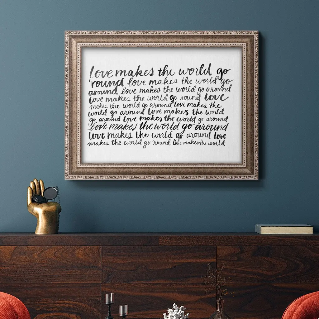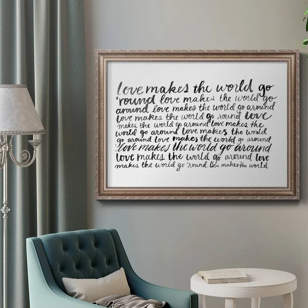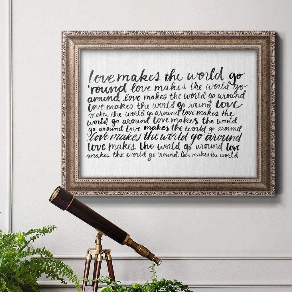 Writing with Love II Premium Framed Canvas- Ready to Hang A Premium Framed Canvas created to last. Framed in distressed wood and available in an array of sizes and colors Featuring a beveled a solid wood stretcher bar, each piece comes ready to hand 3 SIZES AVAILABLE 16''X20'' - Overall Size 18'X27'' - Overall Size 24''x36'' - Overall Size Each piece is made to order. Each piece comes with hanging hardware. Made in the USA Ready to Hang Giclee Paper Print Acrylic Glass Beveled Matt Board