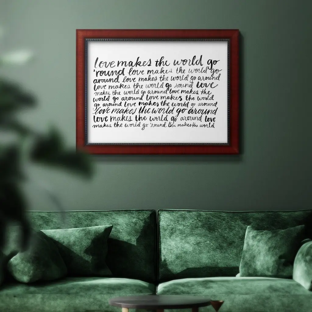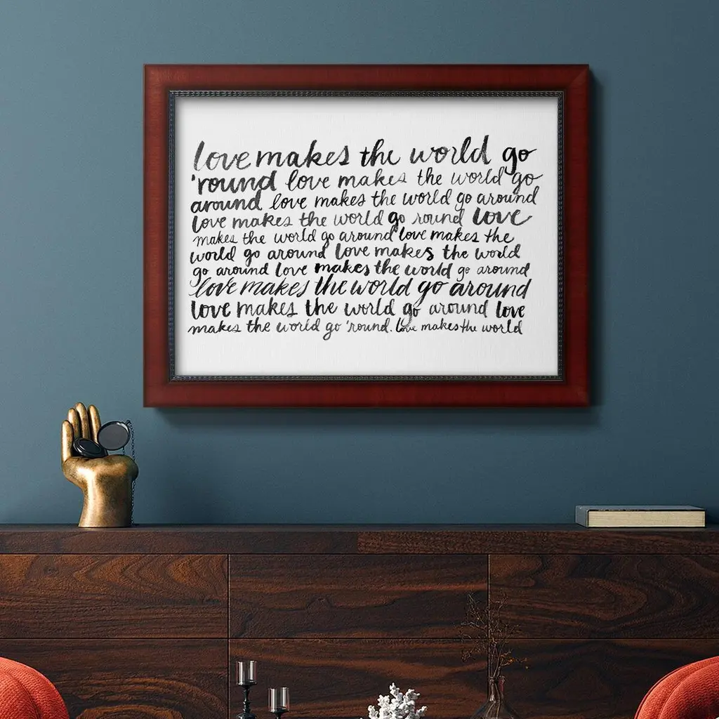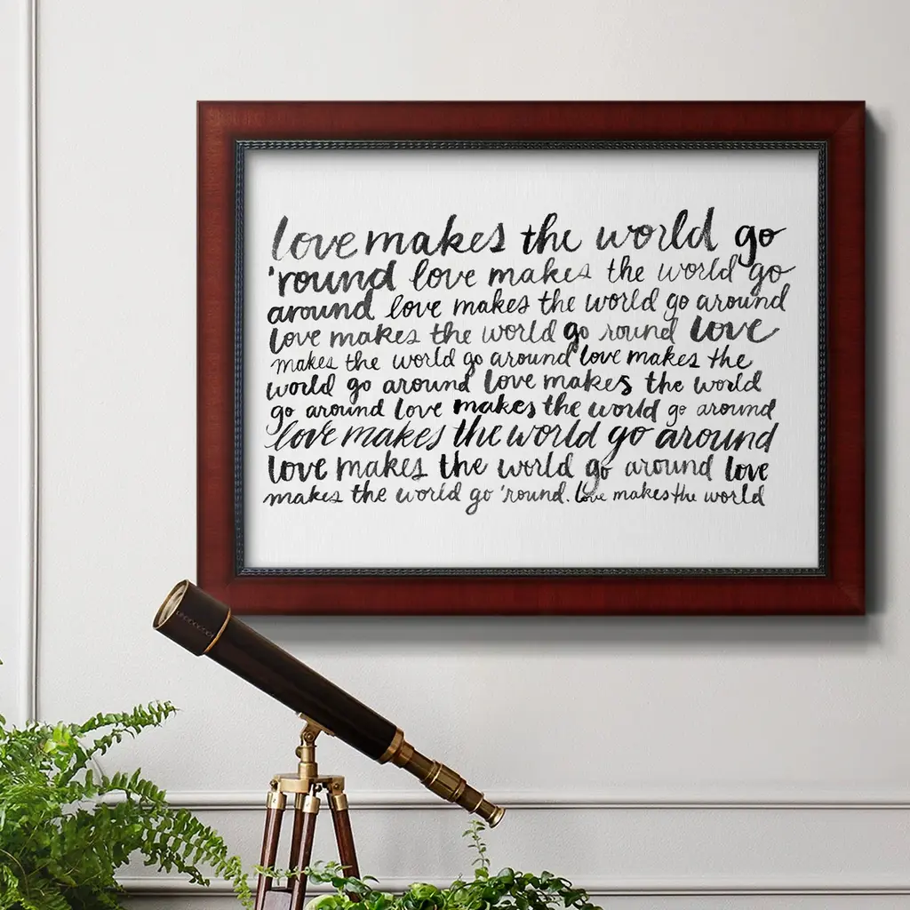 Writing with Love II Premium Framed Canvas- Ready to Hang A Premium Framed Canvas created to last. Framed in distressed wood and available in an array of sizes and colors Featuring a beveled a solid wood stretcher bar, each piece comes ready to hand 3 SIZES AVAILABLE 16''X20'' - Overall Size 18'X27'' - Overall Size 24''x36'' - Overall Size Each piece is made to order. Each piece comes with hanging hardware. Made in the USA Ready to Hang Giclee Paper Print Acrylic Glass Beveled Matt Board