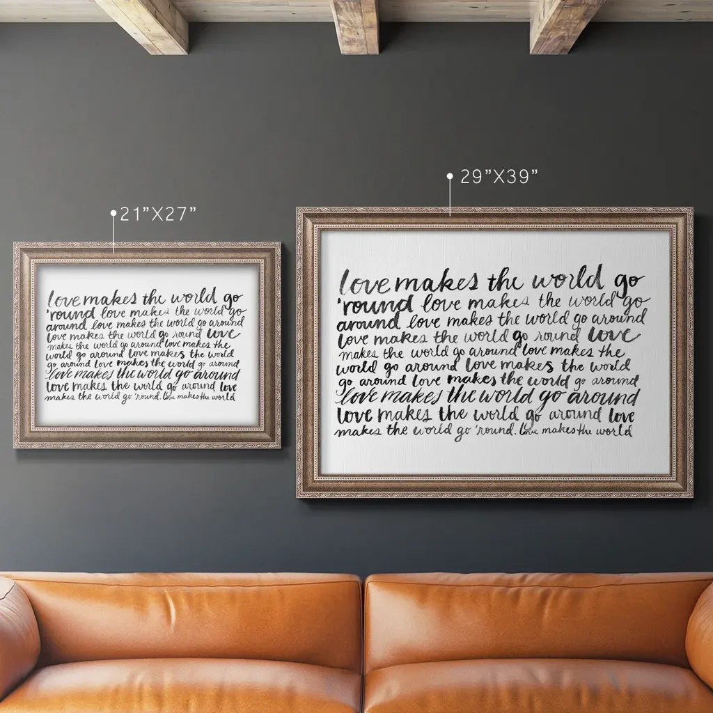 Writing with Love II Premium Framed Canvas- Ready to Hang A Premium Framed Canvas created to last. Framed in distressed wood and available in an array of sizes and colors Featuring a beveled a solid wood stretcher bar, each piece comes ready to hand 3 SIZES AVAILABLE 16''X20'' - Overall Size 18'X27'' - Overall Size 24''x36'' - Overall Size Each piece is made to order. Each piece comes with hanging hardware. Made in the USA Ready to Hang Giclee Paper Print Acrylic Glass Beveled Matt Board