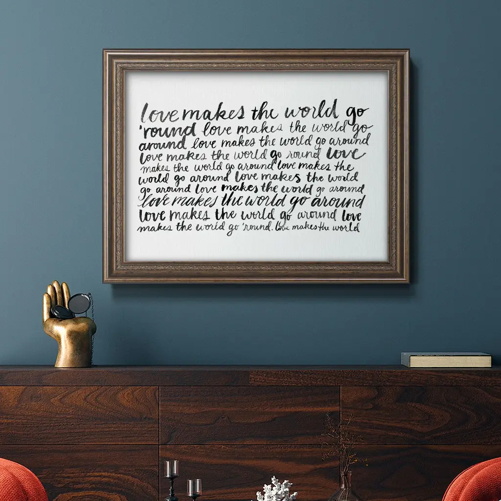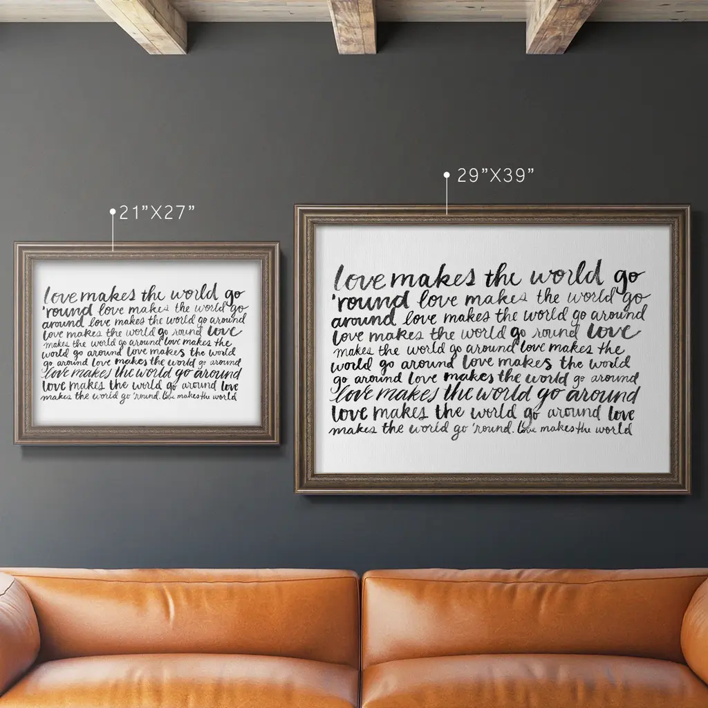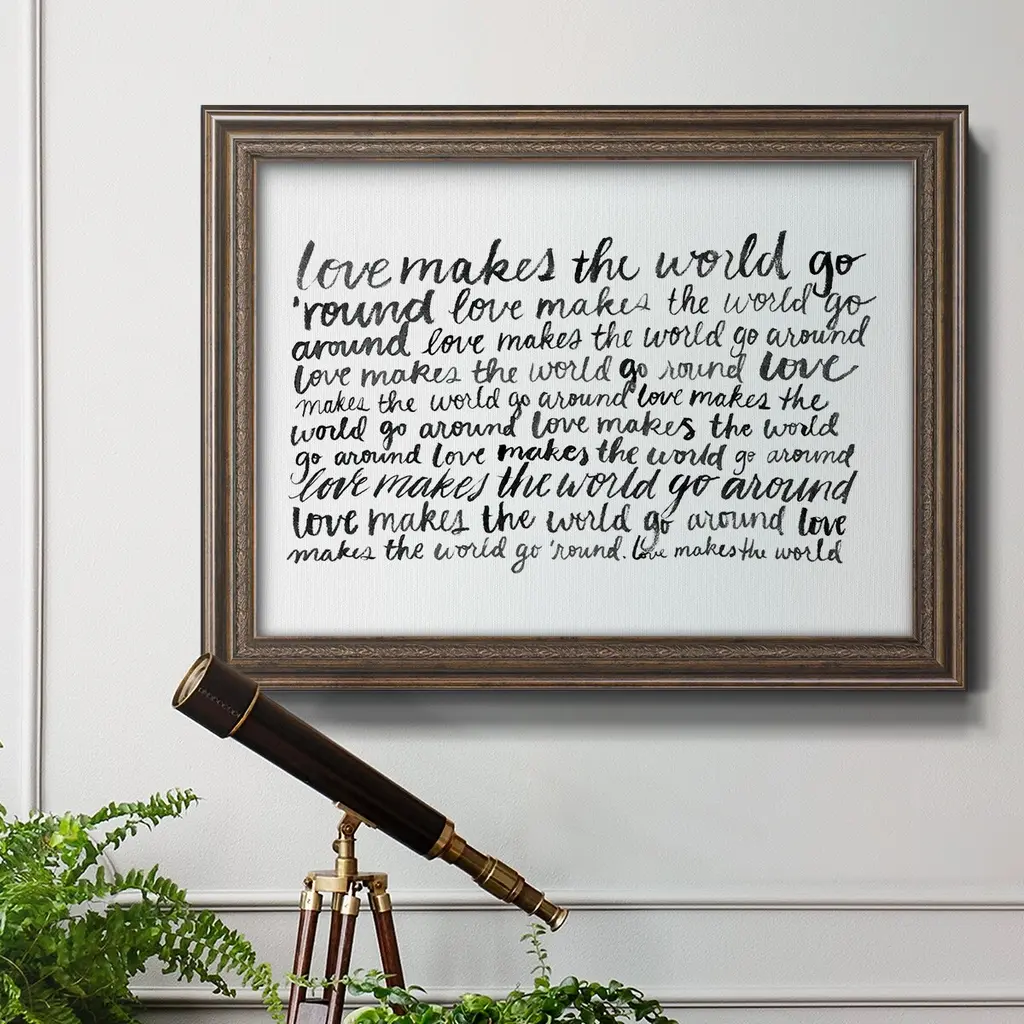Writing with Love II Premium Framed Canvas- Ready to Hang A Premium Framed Canvas created to last. Framed in distressed wood and available in an array of sizes and colors Featuring a beveled a solid wood stretcher bar, each piece comes ready to hand 3 SIZES AVAILABLE 16''X20'' - Overall Size 18'X27'' - Overall Size 24''x36'' - Overall Size Each piece is made to order. Each piece comes with hanging hardware. Made in the USA Ready to Hang Giclee Paper Print Acrylic Glass Beveled Matt Board