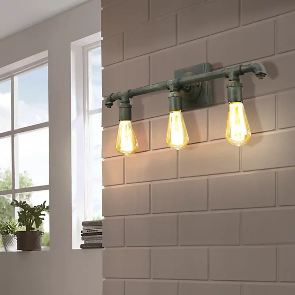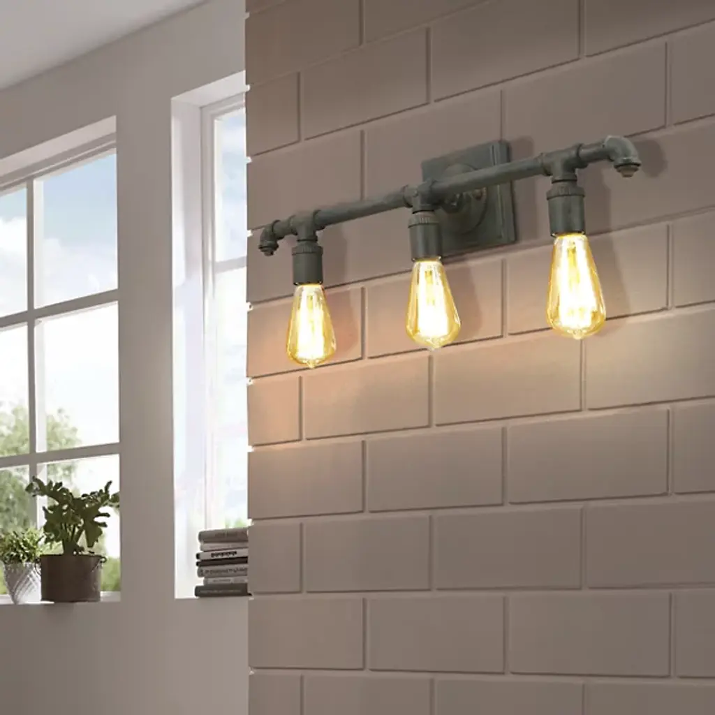Industrial chic done right. The Wymer Vanity Light by Eglo is a great addition to modern spaces. Replicating piping you might find in a warehouse but at a designer level, this fixture makes an eye-catching light source for guest or master bathrooms. The 3 exposed sockets can be filled with vintage bulbs to brighten up a vanity area and the bath bar is also dimmer compatible for optimum functionality.