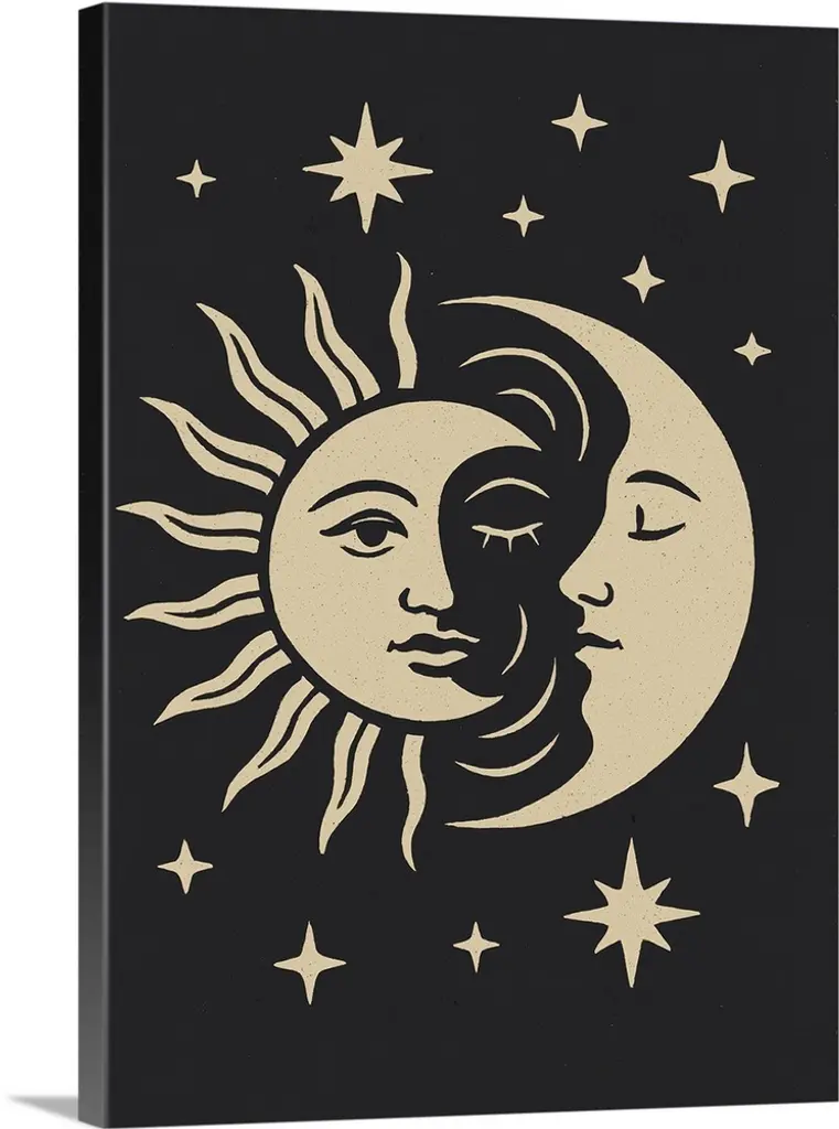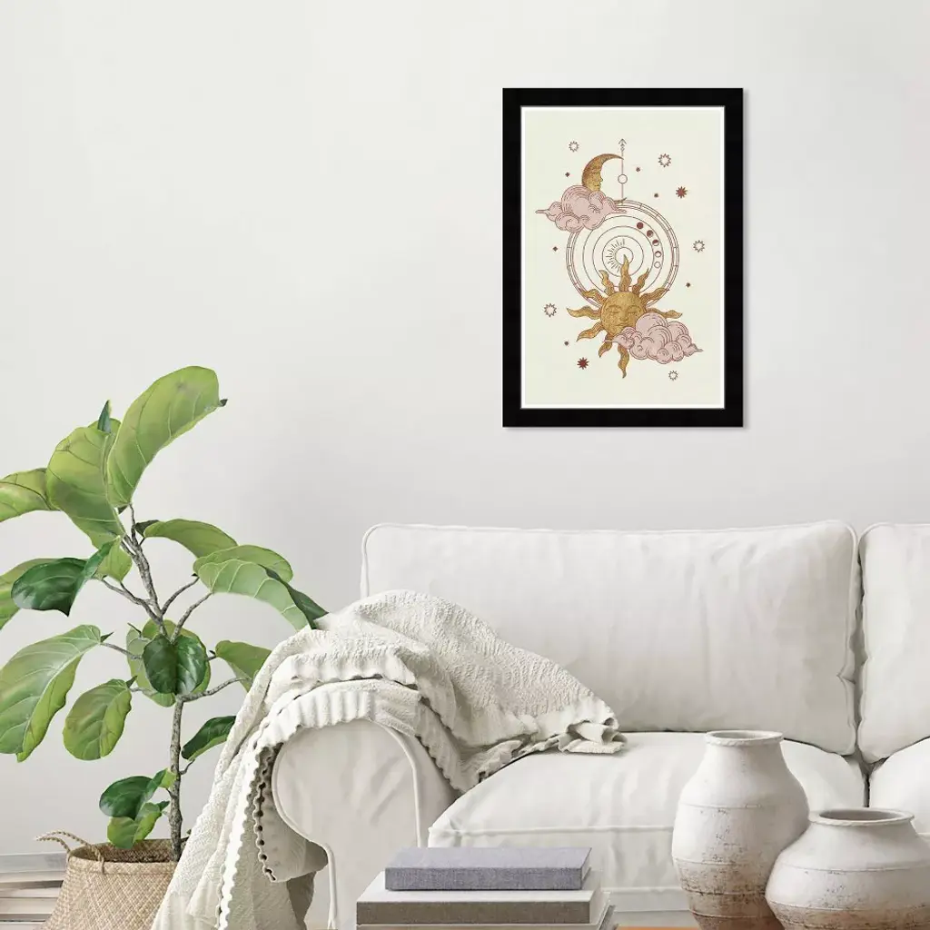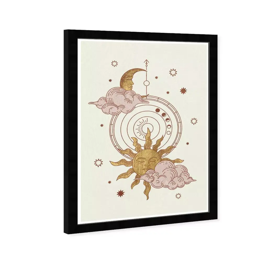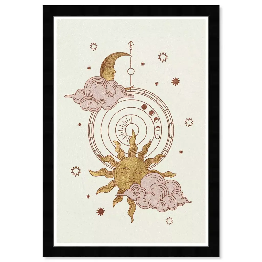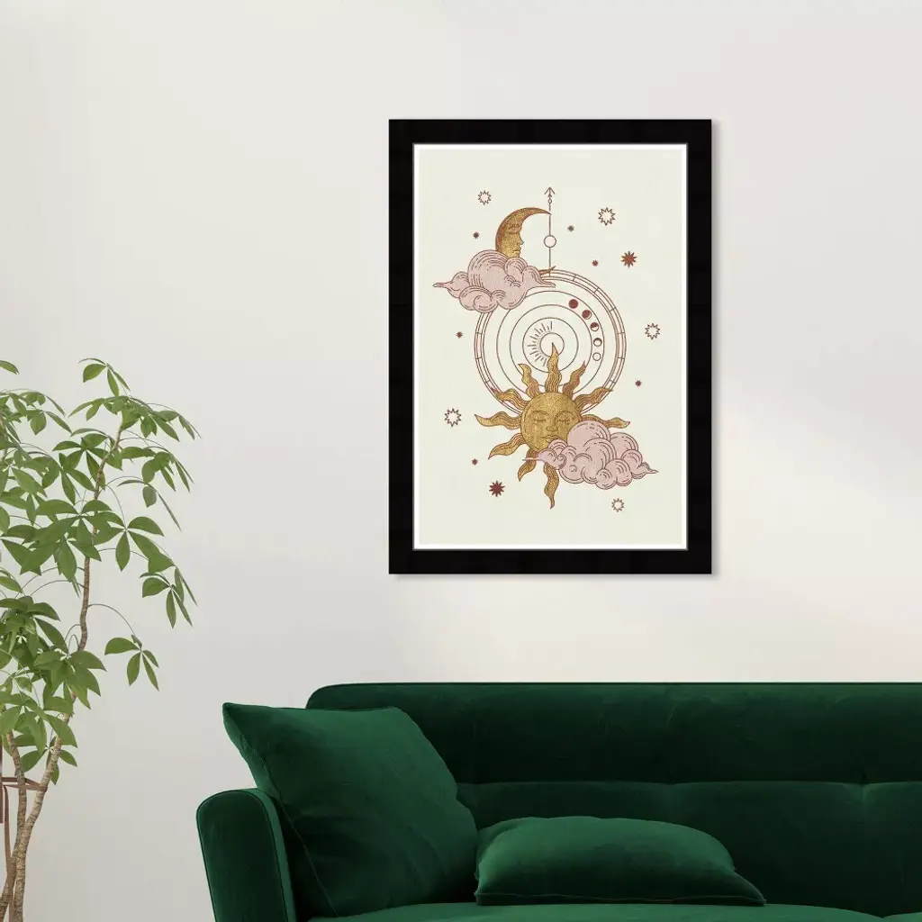 Wynwood Studio 15" X 21" Moon And Sun Tarot Framed Wall Art Print Gold: Modern Digital Art, Black Frame, Vertical Orientation