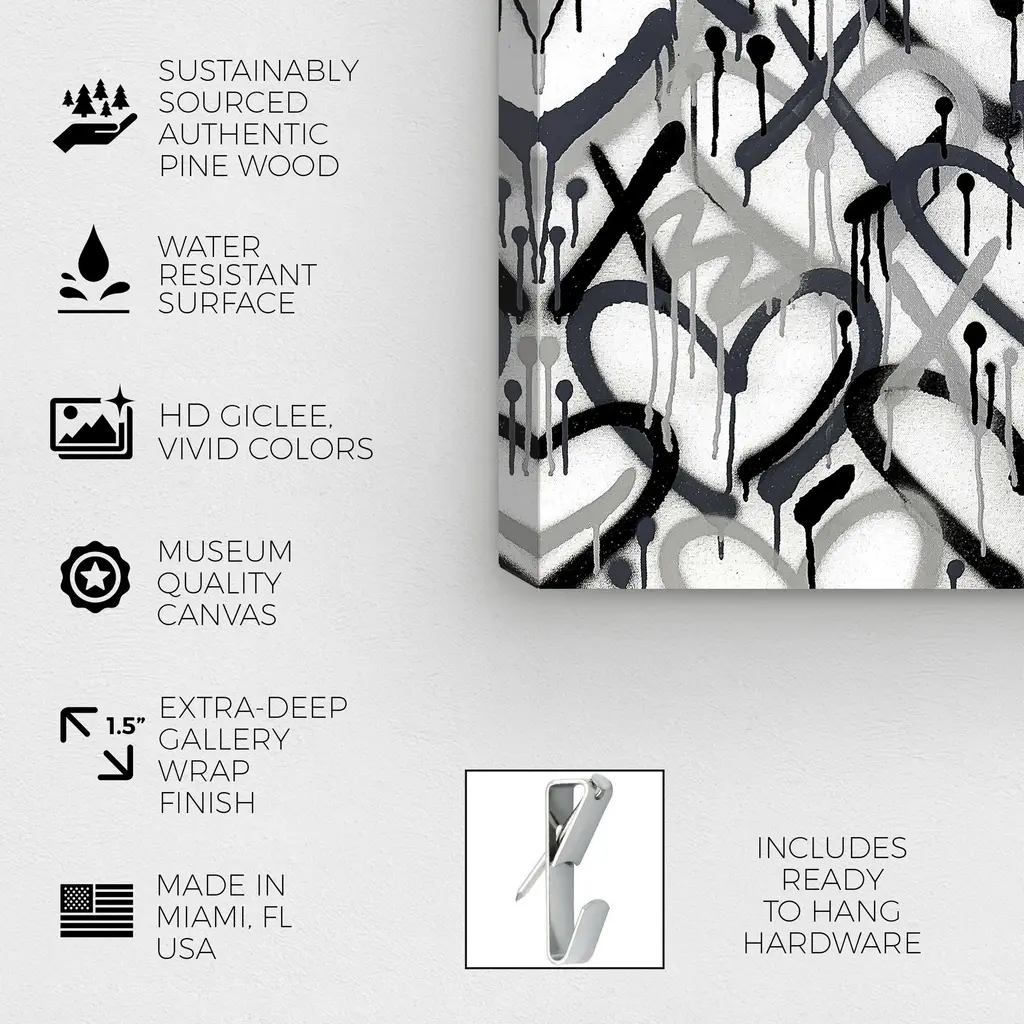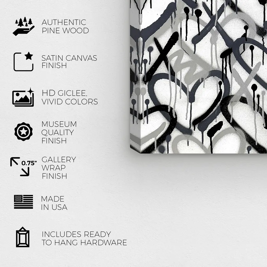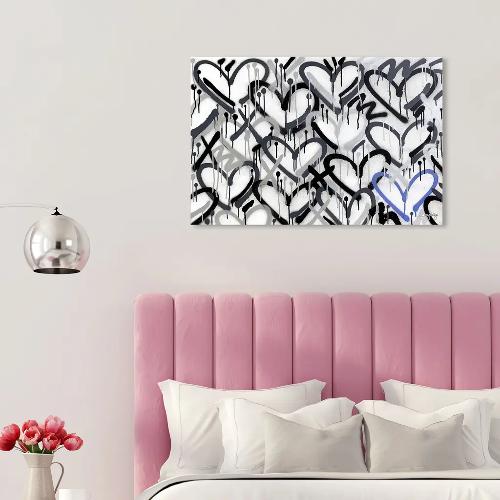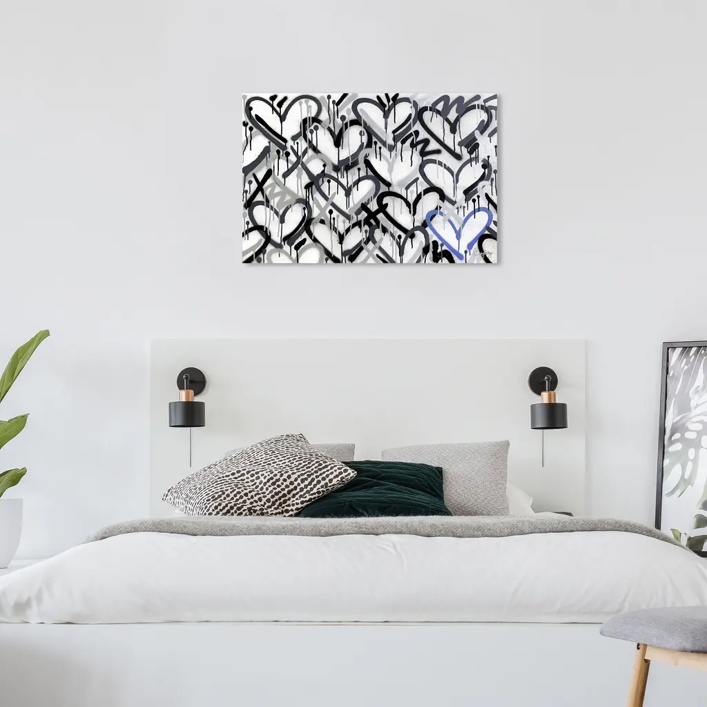 Invoke chromatic contemplation with this chic abstract wall art piece. Transform any room's wall into a beautiful focal point, through shape and color any space in your home or office will feel instantly alive. Corey Paige - Hearts Grays with Blue Accent, is a skillfully made Modern & Contemporary art piece by real artists. With an overarching Black color, this fine art print by Oliver Gal is the perfect finishing touch to your home décor theme. Features: This art piece has a horizontal orientation Abstract design with a Paint theme to bring you the perfect wall art Sustainable and forest friendly canvas print Professionally hand stretched in a 0.75 inch-thick sustainable wood frame Arrives ready to hang with pre-installed hooks for easy hanging. Nail and hanger also included Printed using ultra-premium and fade resistant inks to guarantee high definition and vivid colors Available in several size options Proudly made in the USA