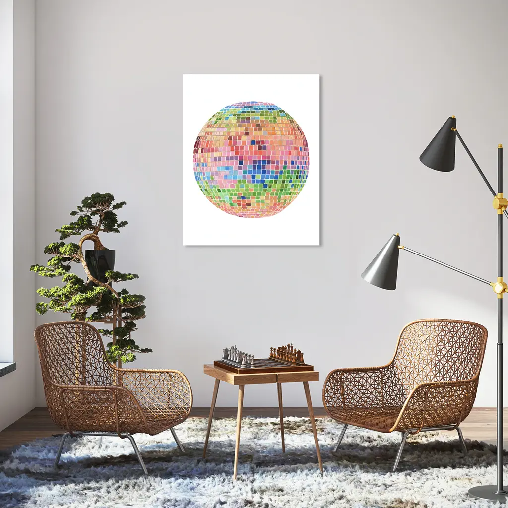 Disco Ball IV, is a skillfully made Modern & Contemporary art piece by real artists. With an overarching Pink color, this fine art print by Oliver Gal is the perfect finishing touch to your home décor theme. Features: This art piece has a vertical orientation Abstract design with a Shapes theme to bring you the perfect wall art Sustainable and forest friendly canvas print Professionally hand stretched in a 0.75 inch-thick sustainable wood frame Arrives ready to hang with pre-installed hooks for easy hanging. Nail and hanger also included Printed using ultra-premium and fade resistant inks to guarantee high definition and vivid colors Available in several size options Proudly made in the USA