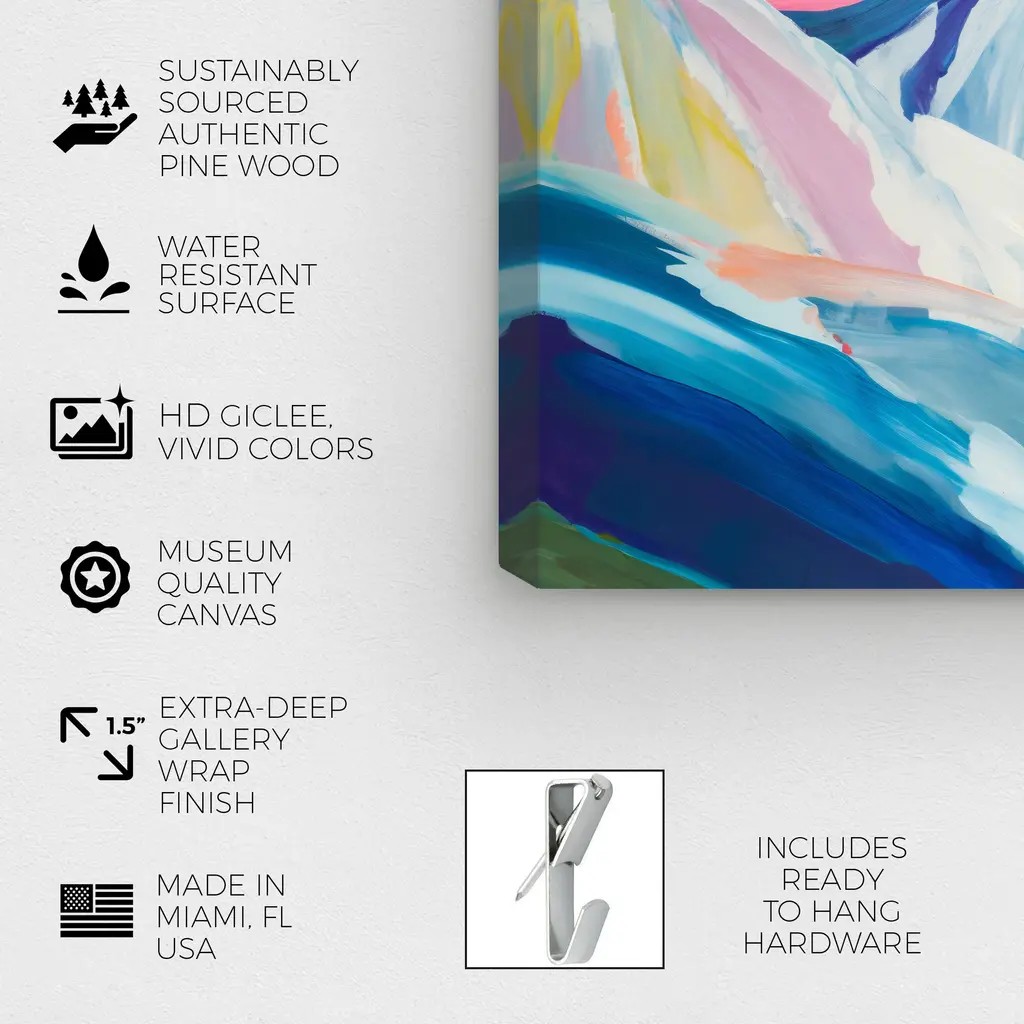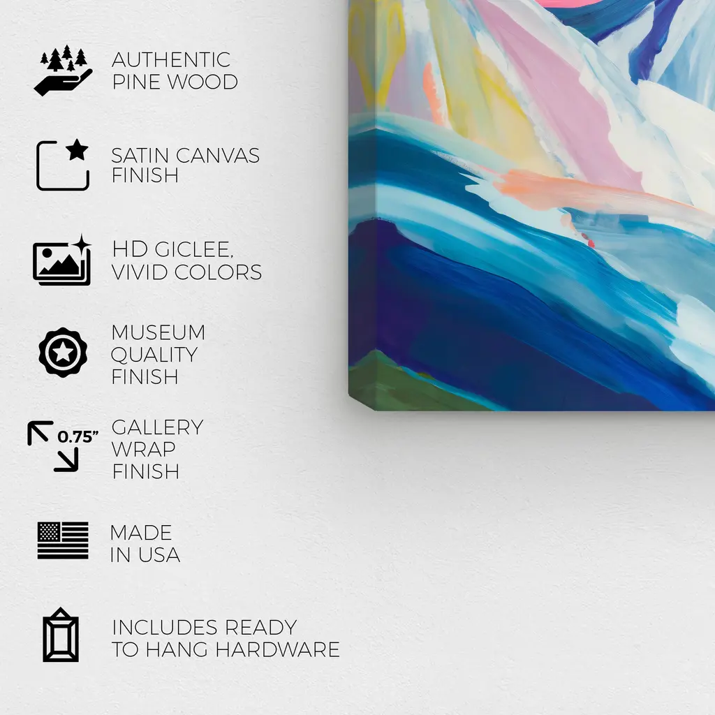 Invoke chromatic contemplation with this chic abstract wall art piece. Transform any room's wall into a beautiful focal point, through shape and color any space in your home or office will feel instantly alive. Ice Mountains in Pastels, is a skillfully made Modern & Contemporary art piece by real artists. With an overarching Blue color, this fine art print by Oliver Gal is the perfect finishing touch to your home décor theme. Features: This art piece has a horizontal orientation Abstract design with a Paint theme to bring you the perfect wall art Sustainable and forest friendly canvas print Professionally hand stretched in a 0.75 inch-thick sustainable wood frame Arrives ready to hang with pre-installed hooks for easy hanging. Nail and hanger also included Printed using ultra-premium and fade resistant inks to guarantee high definition and vivid colors Available in several size options Proudly made in the USA