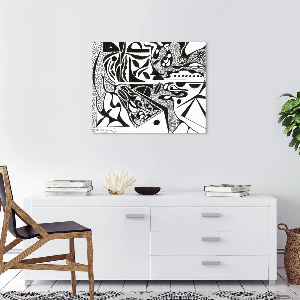 Give shape to any room with this geometric wall art piece. The Minimalist and Scandinavian style with polygons and patterns will bring dimension to your space and will line your walls with a sophisticated design. Manuel Roman - Flowing Lines, is a skillfully made Modern & Contemporary art piece by real artists. With an overarching Black color, this fine art print by Oliver Gal is the perfect finishing touch to your home décor theme. Features: This art piece has a horizontal orientation Abstract design with a Geometric theme to bring you the perfect wall art Sustainable and forest friendly canvas print Professionally hand stretched in a 0.75 inch-thick sustainable wood frame Arrives ready to hang with pre-installed hooks for easy hanging. Nail and hanger also included Printed using ultra-premium and fade resistant inks to guarantee high definition and vivid colors Available in several size options Proudly made in the USA