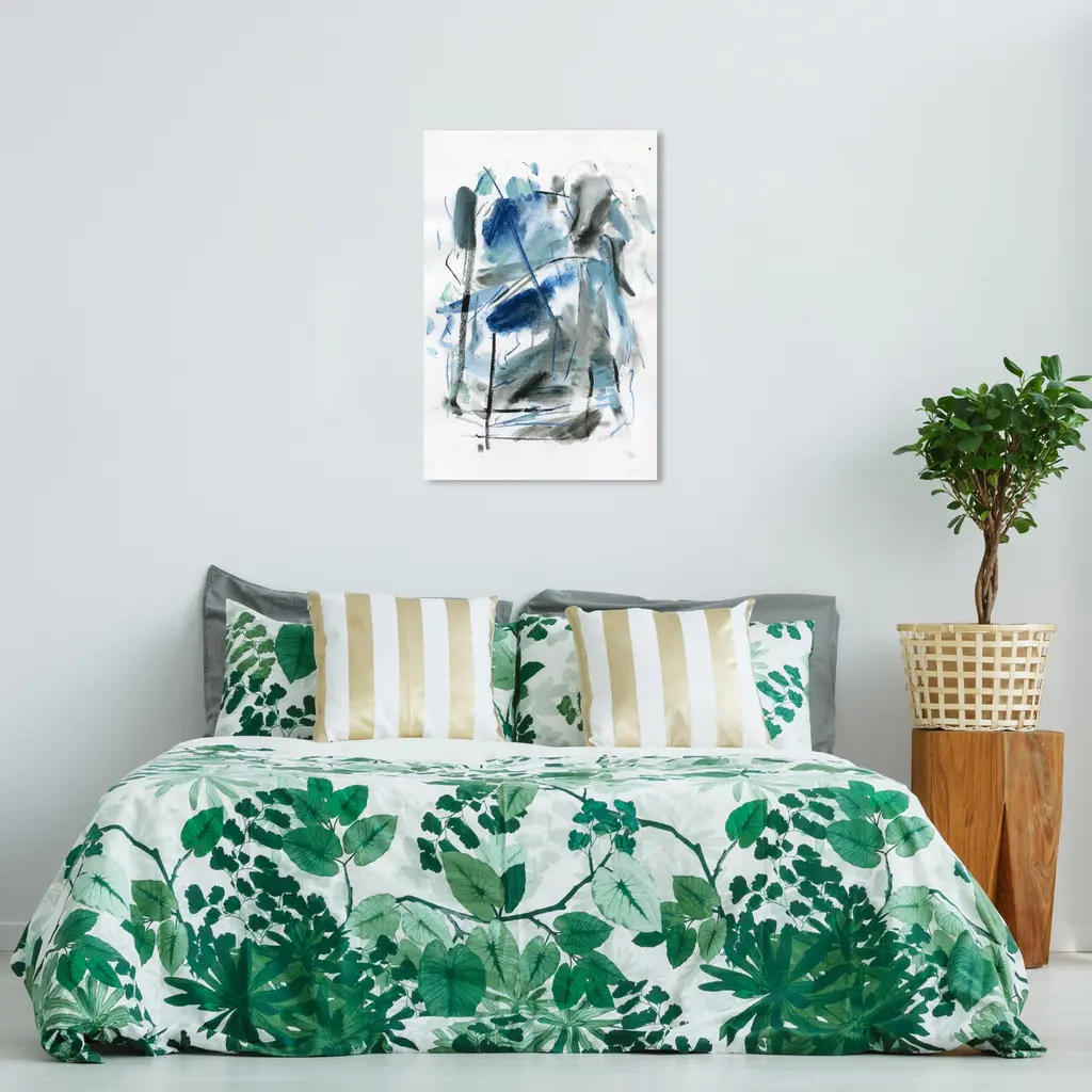 Invoke chromatic contemplation with this chic abstract wall art piece. Transform any room's wall into a beautiful focal point, through shape and color any space in your home or office will feel instantly alive. Mint Leaves Within, is a skillfully made Modern & Contemporary art piece by real artists. With an overarching Blue color, this fine art print by Oliver Gal is the perfect finishing touch to your home décor theme. Features: This art piece has a vertical orientation Abstract design with a Paint theme to bring you the perfect wall art Sustainable and forest friendly canvas print Professionally hand stretched in a 0.75 inch-thick sustainable wood frame Arrives ready to hang with pre-installed hooks for easy hanging. Nail and hanger also included Printed using ultra-premium and fade resistant inks to guarantee high definition and vivid colors Available in several size options Proudly made in the USA