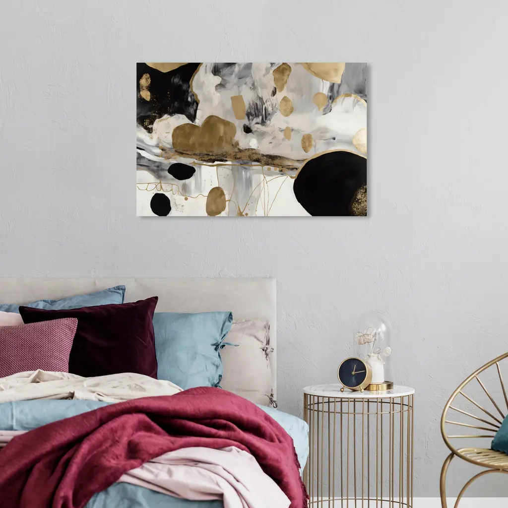 Planets at Work, is a skillfully made Glam art piece by real artists. With an overarching Gold color, this fine art print by Oliver Gal is the perfect finishing touch to your home décor theme. Features: This art piece has a horizontal orientation Abstract design with a Textures theme to bring you the perfect wall art Sustainable and forest friendly canvas print Professionally hand stretched in a 0.75 inch-thick sustainable wood frame Arrives ready to hang with pre-installed hooks for easy hanging. Nail and hanger also included Printed using ultra-premium and fade resistant inks to guarantee high definition and vivid colors Available in several size options Proudly made in the USA