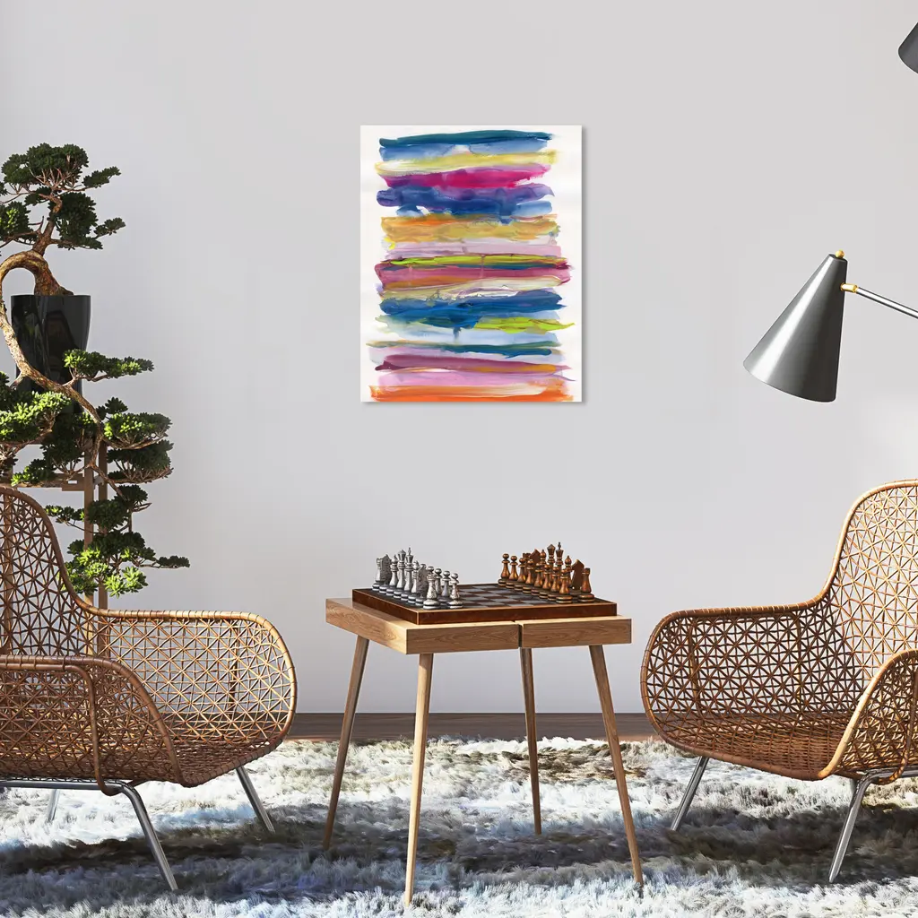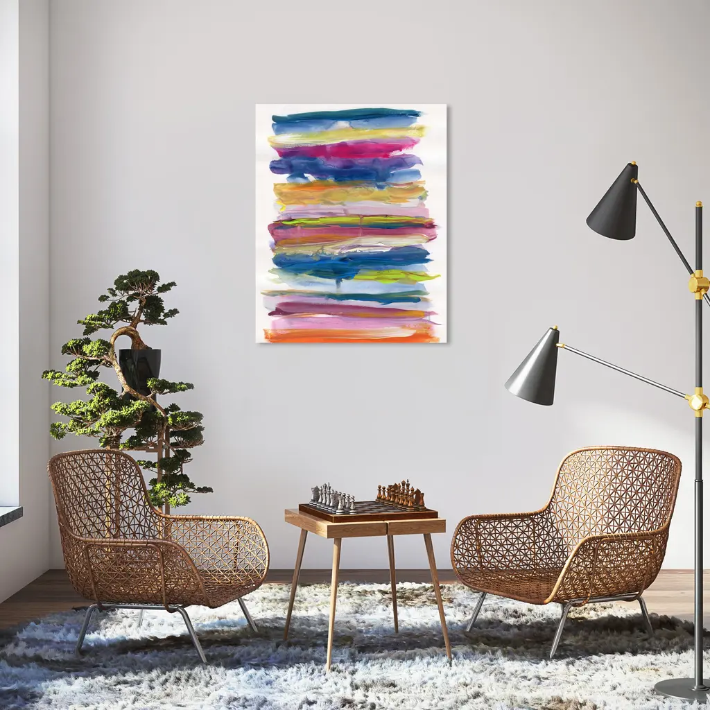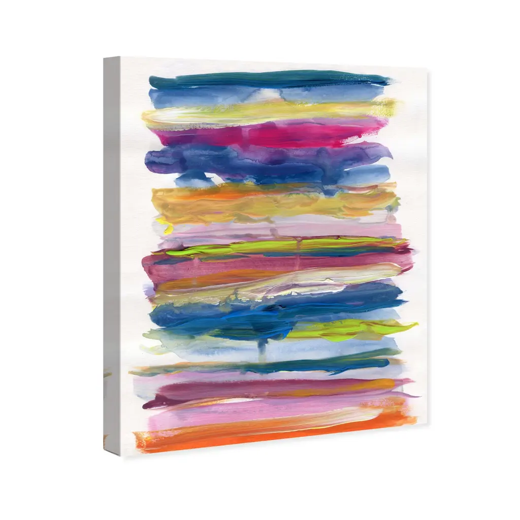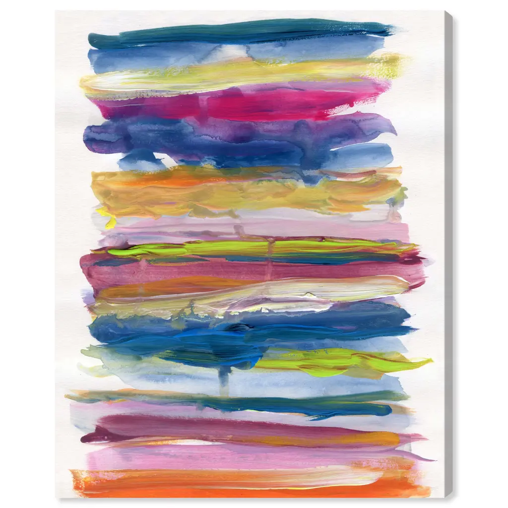 Invoke chromatic contemplation with this chic abstract wall art piece. Transform any room's wall into a beautiful focal point, through shape and color any space in your home or office will feel instantly alive. Striped and Neon, is a skillfully made Modern & Contemporary art piece by real artists. With an overarching Blue color, this fine art print by Oliver Gal is the perfect finishing touch to your home décor theme. Features: This art piece has a vertical orientation Abstract design with a Paint theme to bring you the perfect wall art Sustainable and forest friendly canvas print Professionally hand stretched in a 0.75 inch-thick sustainable wood frame Arrives ready to hang with pre-installed hooks for easy hanging. Nail and hanger also included Printed using ultra-premium and fade resistant inks to guarantee high definition and vivid colors Available in several size options Proudly made in the USA