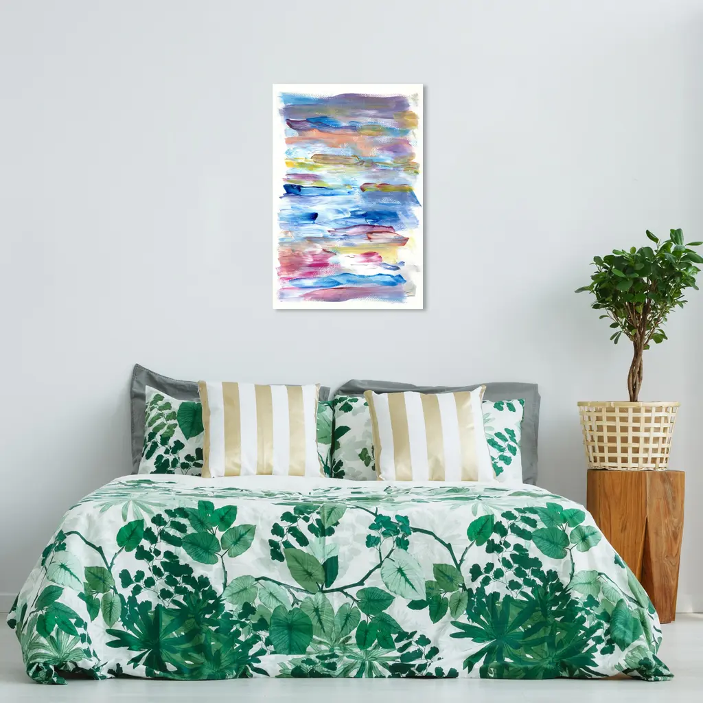 Invoke chromatic contemplation with this chic abstract wall art piece. Transform any room's wall into a beautiful focal point, through shape and color any space in your home or office will feel instantly alive. Tropical Waves, is a skillfully made Modern & Contemporary art piece by real artists. With an overarching Blue color, this fine art print by Oliver Gal is the perfect finishing touch to your home décor theme. Features: This art piece has a vertical orientation Abstract design with a Paint theme to bring you the perfect wall art Sustainable and forest friendly canvas print Professionally hand stretched in a 0.75 inch-thick sustainable wood frame Arrives ready to hang with pre-installed hooks for easy hanging. Nail and hanger also included Printed using ultra-premium and fade resistant inks to guarantee high definition and vivid colors Available in several size options Proudly made in the USA