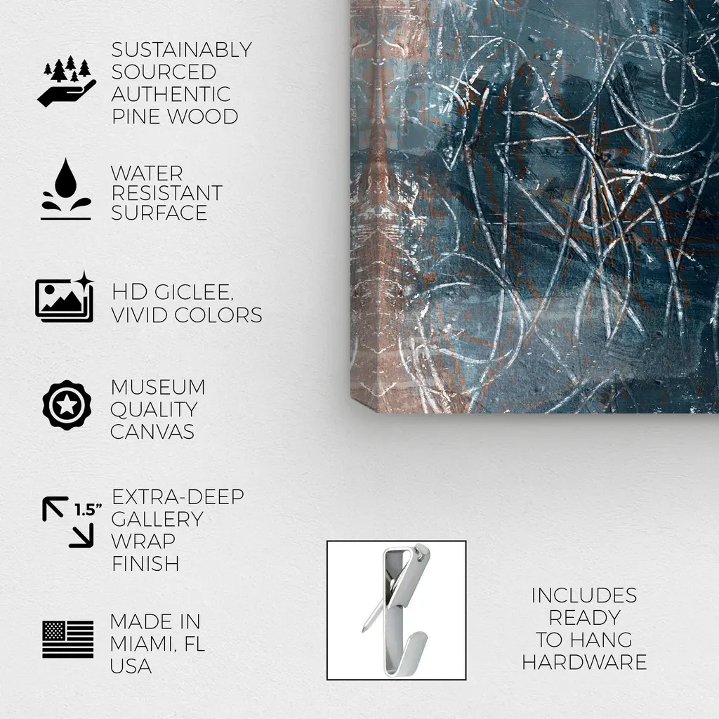 Blue Dreamer, is a skillfully made Modern & Contemporary art piece by real artists. With an overarching Blue color, this fine art print by Wynwood Studio Canvas is the perfect finishing touch to your home décor theme. Features: This art piece has a horizontal orientation Abstract design with a Textures theme to bring you the perfect wall art Sustainable and forest friendly canvas print Professionally hand stretched in a 0.75 inch-thick sustainable wood frame Arrives ready to hang with pre-installed hooks for easy hanging. Nail and hanger also included Printed using ultra-premium and fade resistant inks to guarantee high definition and vivid colors Available in several size options Proudly made in the USA