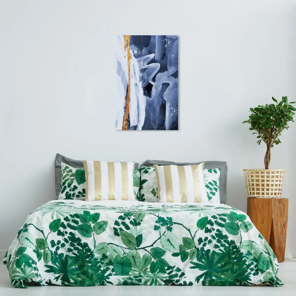 Invoke chromatic contemplation with this chic abstract wall art piece. Transform any room's wall into a beautiful focal point, through shape and color any space in your home or office will feel instantly alive. Calligraphic Abstract, is a skillfully made Modern & Contemporary art piece by real artists. With an overarching Blue color, this fine art print by Wynwood Studio Canvas is the perfect finishing touch to your home décor theme. Features: This art piece has a vertical orientation Abstract design with a Paint theme to bring you the perfect wall art Sustainable and forest friendly canvas print Professionally hand stretched in a 0.75 inch-thick sustainable wood frame Arrives ready to hang with pre-installed hooks for easy hanging. Nail and hanger also included Printed using ultra-premium and fade resistant inks to guarantee high definition and vivid colors Available in several size options Proudly made in the USA