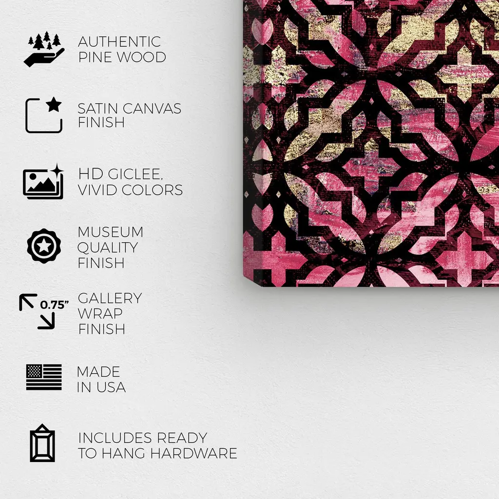Cranberry Tiles, is a skillfully made Traditional art piece by real artists. With an overarching Pink color, this fine art print by Wynwood Studio Canvas is the perfect finishing touch to your home décor theme. Features: This art piece has a horizontal orientation Abstract design with a Patterns theme to bring you the perfect wall art Sustainable and forest friendly canvas print Professionally hand stretched in a 0.75 inch-thick sustainable wood frame Arrives ready to hang with pre-installed hooks for easy hanging. Nail and hanger also included Printed using ultra-premium and fade resistant inks to guarantee high definition and vivid colors Available in several size options Proudly made in the USA
