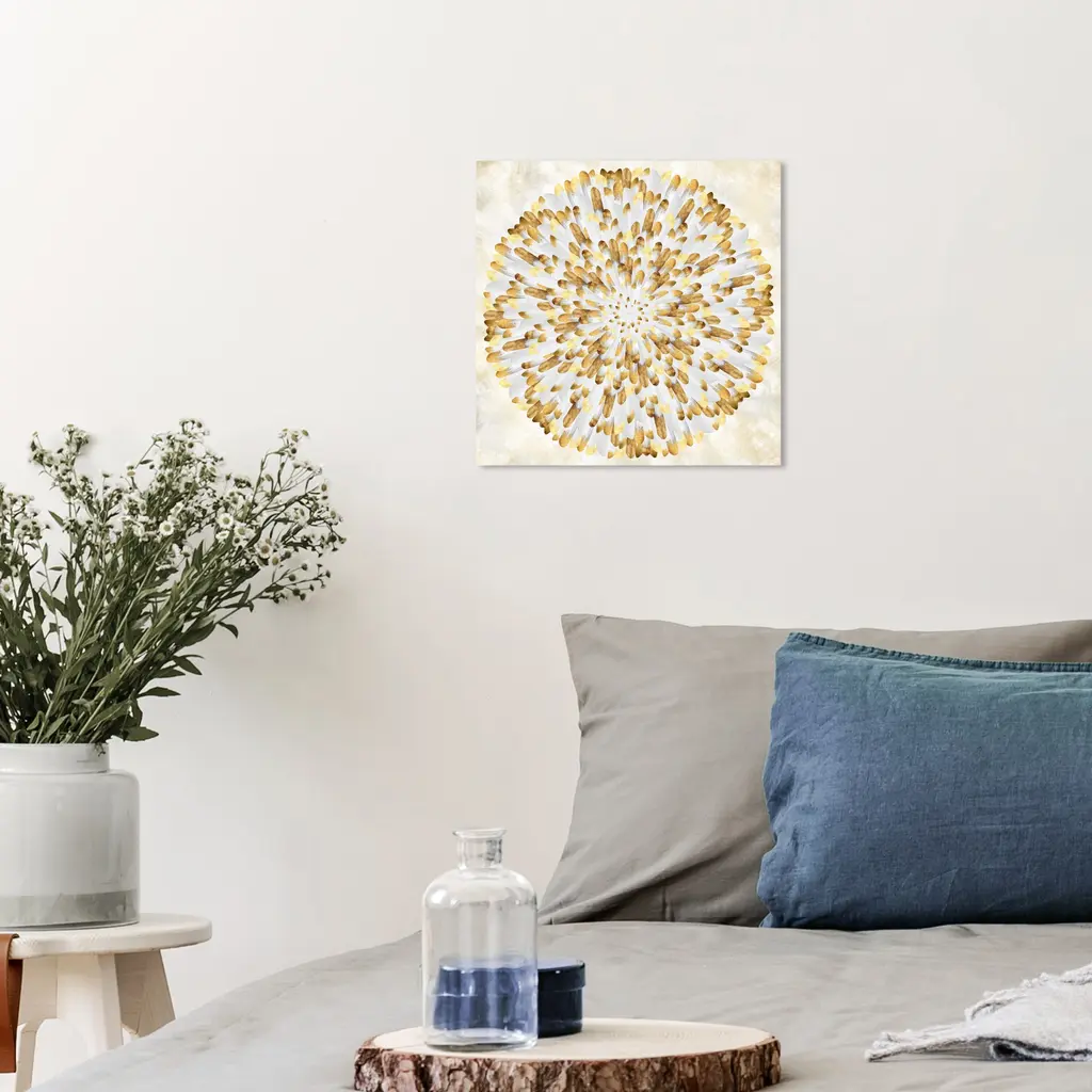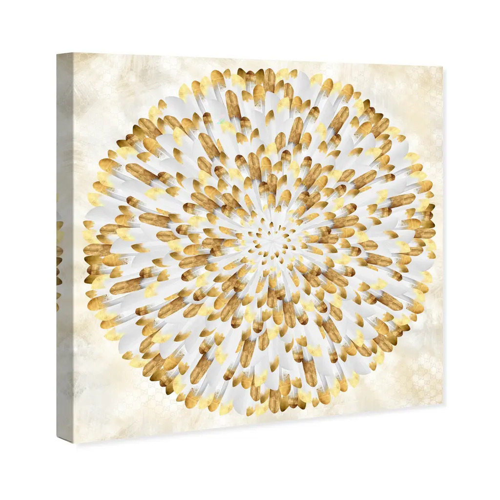 Wynwood Studio Canvas Abstract Feathered Tondo White And Metallic Gold Modern & Contemporary Wall Art Canvas Print - 30 X 30