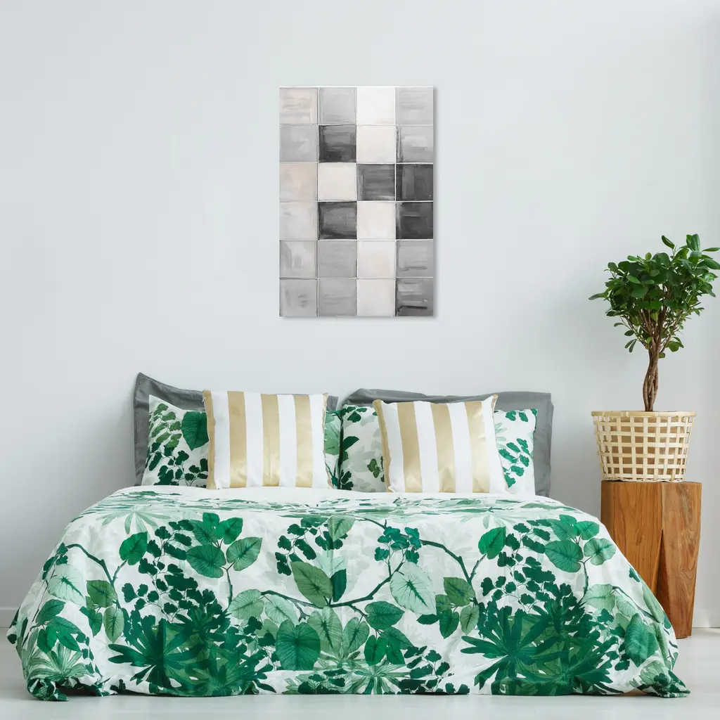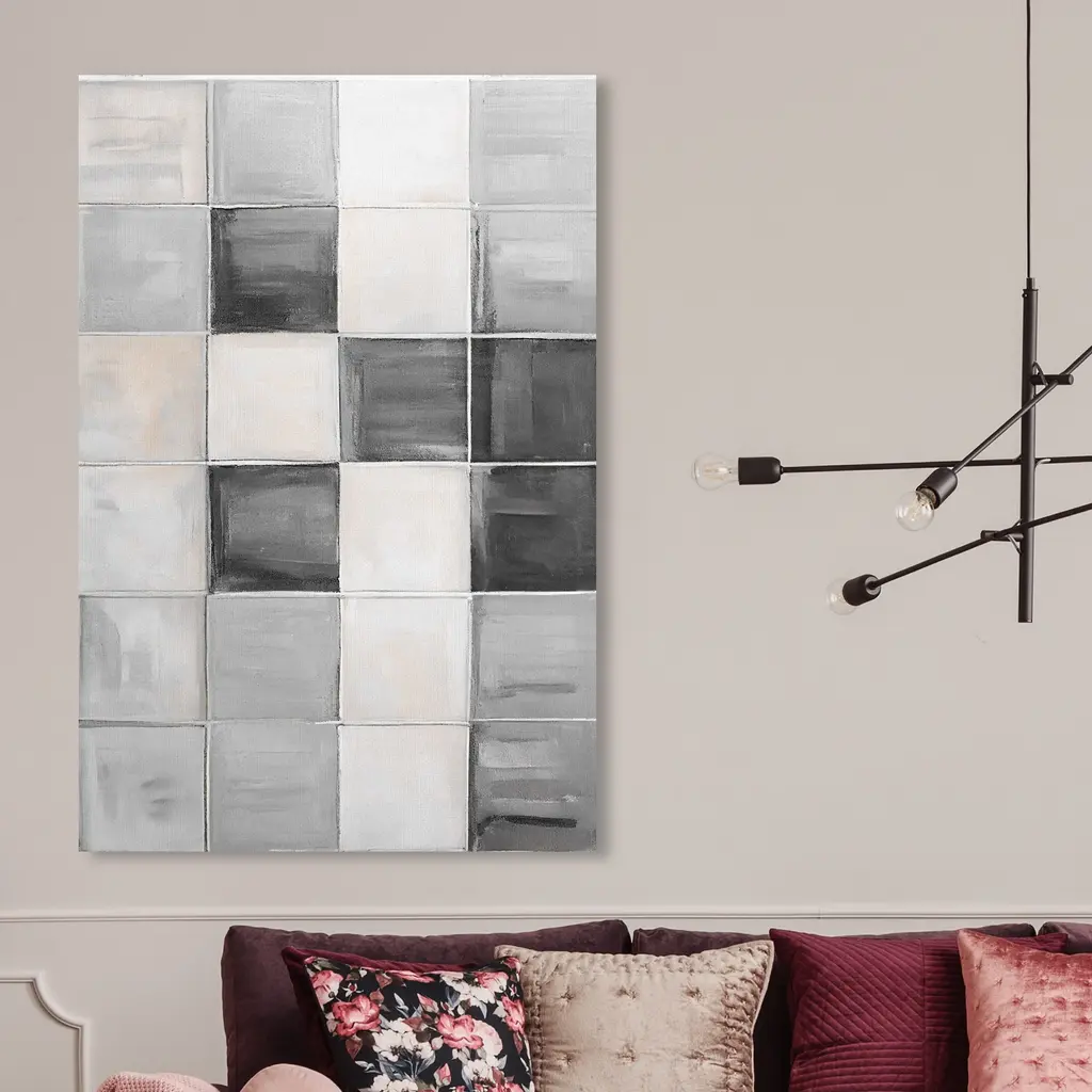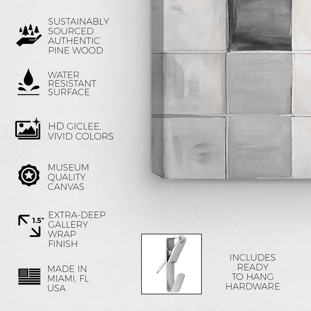 Features, is a skillfully made Modern & Contemporary art piece by real artists. With an overarching Grey color, this fine art print by Wynwood Studio Canvas is the perfect finishing touch to your home décor theme. Features: This art piece has a vertical orientation Abstract design with a Shapes theme to bring you the perfect wall art Sustainable and forest friendly canvas print Professionally hand stretched in a 0.75 inch-thick sustainable wood frame Arrives ready to hang with pre-installed hooks for easy hanging. Nail and hanger also included Printed using ultra-premium and fade resistant inks to guarantee high definition and vivid colors Available in several size options Proudly made in the USA