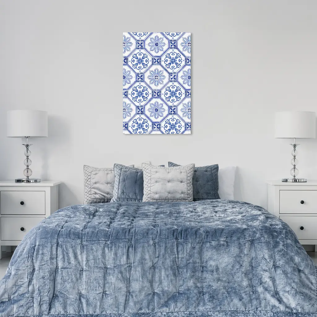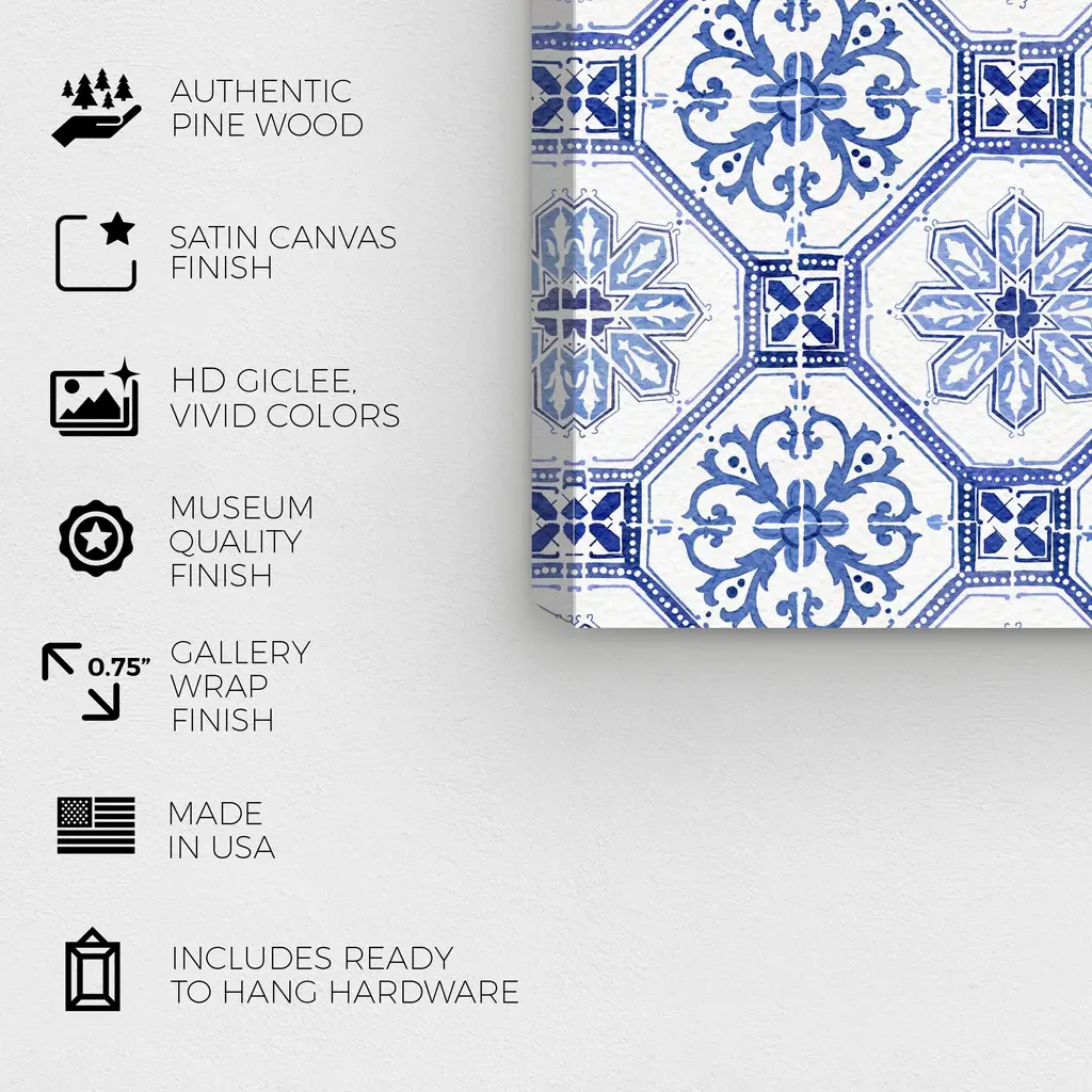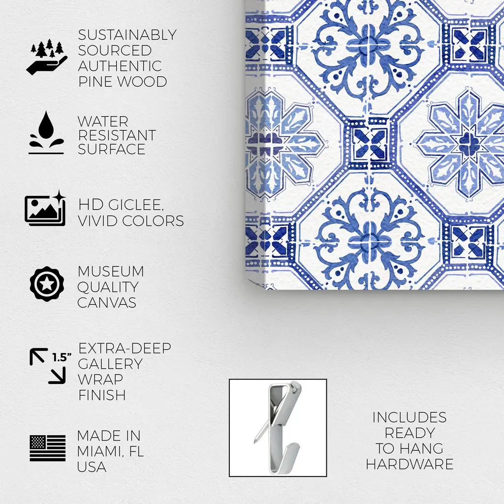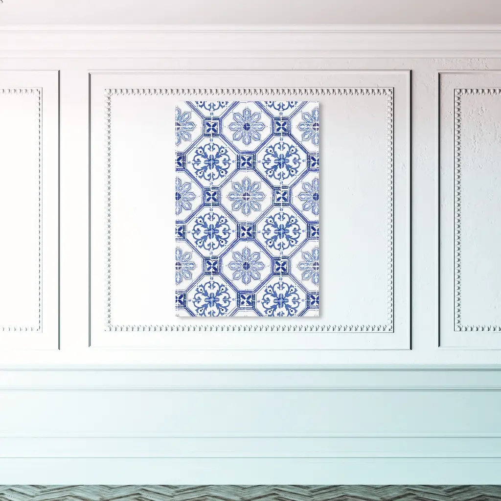 Floral Azulejos, is a skillfully made Modern & Contemporary art piece by real artists. With an overarching Blue color, this fine art print by Wynwood Studio Canvas is the perfect finishing touch to your home décor theme. Features: This art piece has a vertical orientation Abstract design with a Patterns theme to bring you the perfect wall art Sustainable and forest friendly canvas print Professionally hand stretched in a 0.75 inch-thick sustainable wood frame Arrives ready to hang with pre-installed hooks for easy hanging. Nail and hanger also included Printed using ultra-premium and fade resistant inks to guarantee high definition and vivid colors Available in several size options Proudly made in the USA