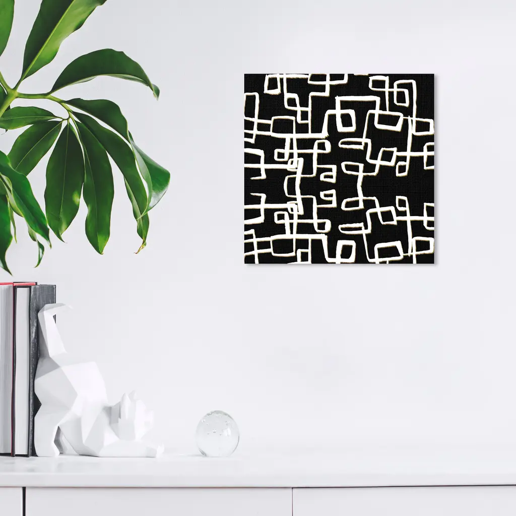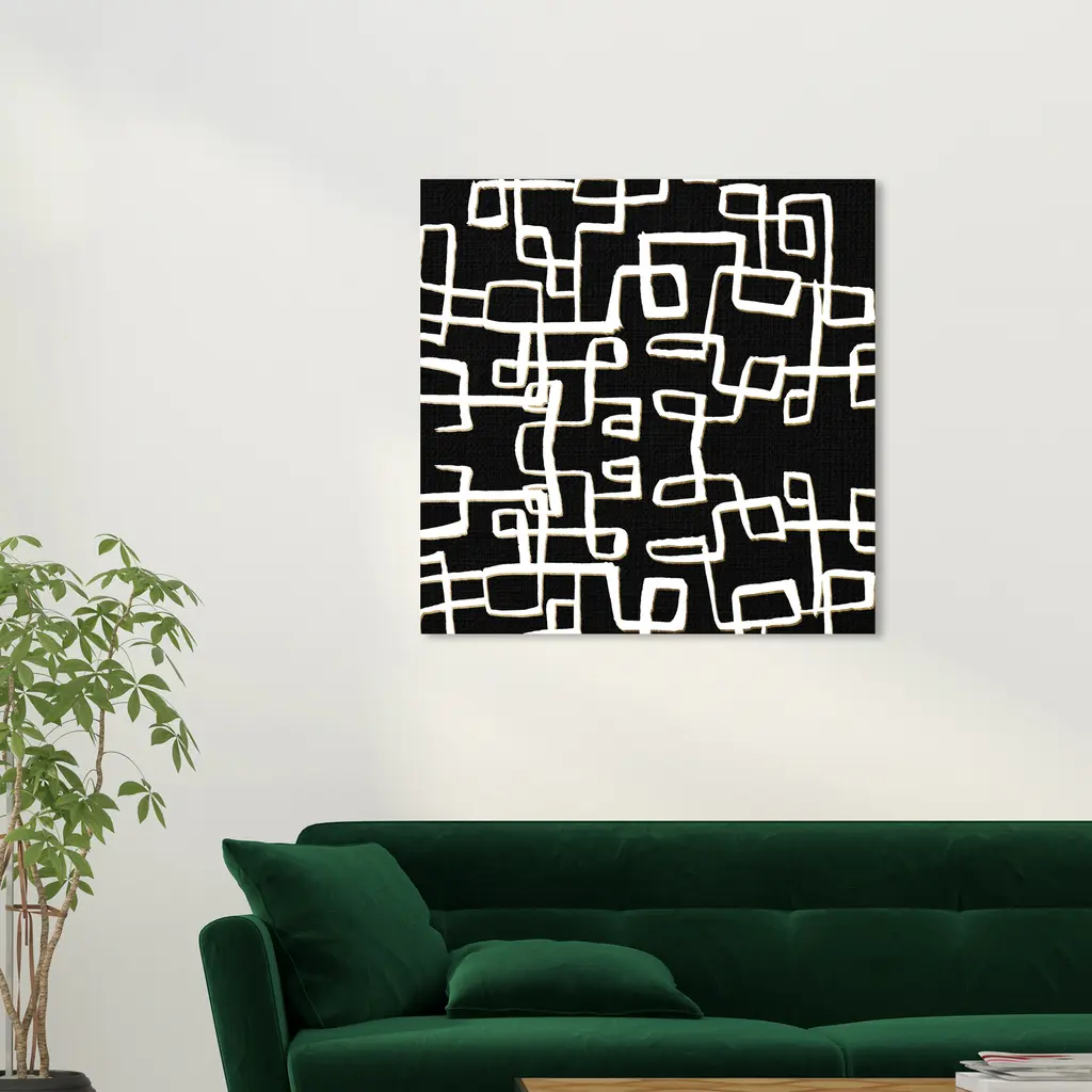 Geometry Noir, is a skillfully made Modern & Contemporary art piece by real artists. With an overarching Black color, this fine art print by Wynwood Studio Canvas is the perfect finishing touch to your home décor theme. Features: This art piece has a square orientation Abstract design with a Geometric theme to bring you the perfect wall art Sustainable and forest friendly canvas print Professionally hand stretched in a 0.75 inch-thick sustainable wood frame Arrives ready to hang with pre-installed hooks for easy hanging. Nail and hanger also included Printed using ultra-premium and fade resistant inks to guarantee high definition and vivid colors Available in several size options Proudly made in the USA
