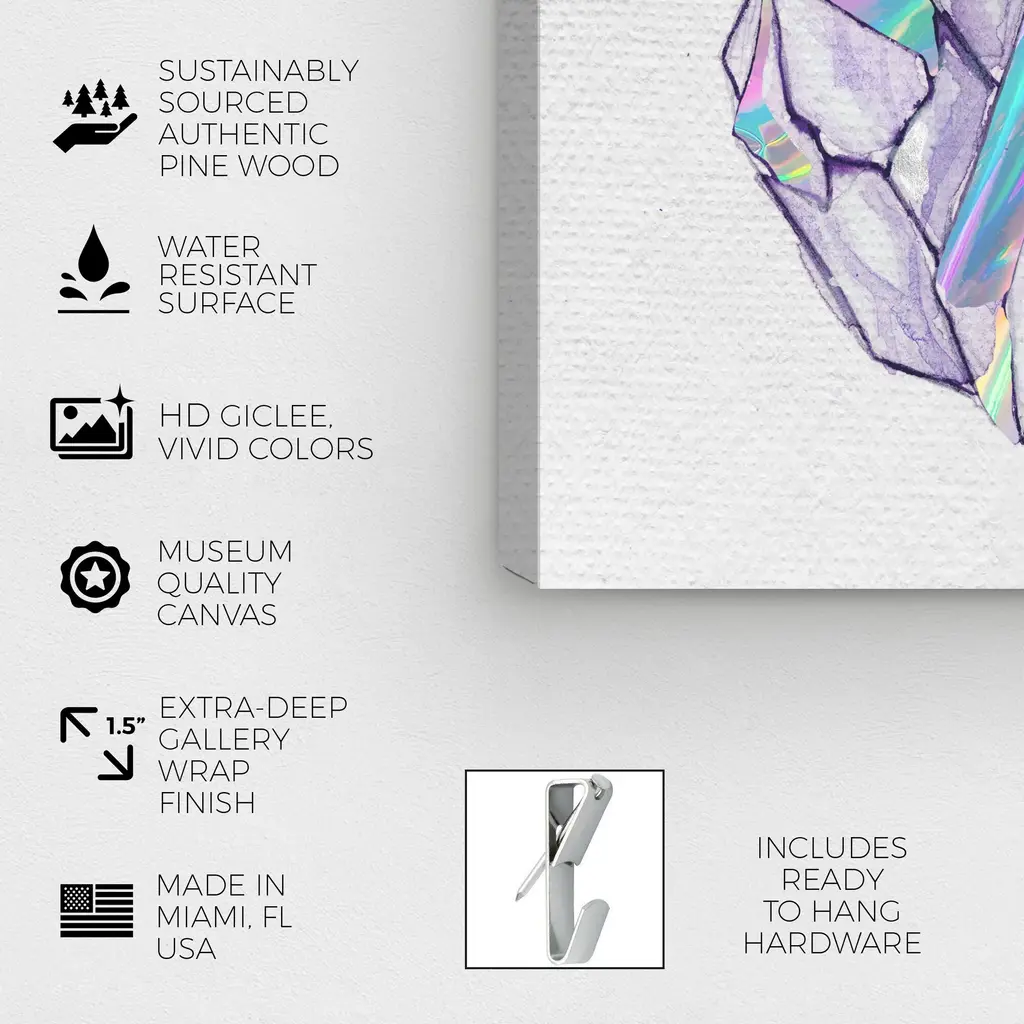 Glistening Crystals Holo, is a skillfully made Modern & Contemporary art piece by real artists. With an overarching White color, this fine art print by Wynwood Studio Canvas is the perfect finishing touch to your home décor theme. Features: This art piece has a square orientation Abstract design with a Crystals theme to bring you the perfect wall art Sustainable and forest friendly canvas print Professionally hand stretched in a 0.75 inch-thick sustainable wood frame Arrives ready to hang with pre-installed hooks for easy hanging. Nail and hanger also included Printed using ultra-premium and fade resistant inks to guarantee high definition and vivid colors Available in several size options Proudly made in the USA