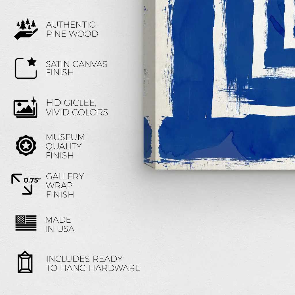 Magical Thinking Bleu, is a skillfully made Modern & Contemporary art piece by real artists. With an overarching Blue color, this fine art print by Wynwood Studio Canvas is the perfect finishing touch to your home décor theme. Features: This art piece has a square orientation Abstract design with a Geometric theme to bring you the perfect wall art Sustainable and forest friendly canvas print Professionally hand stretched in a 0.75 inch-thick sustainable wood frame Arrives ready to hang with pre-installed hooks for easy hanging. Nail and hanger also included Printed using ultra-premium and fade resistant inks to guarantee high definition and vivid colors Available in several size options Proudly made in the USA