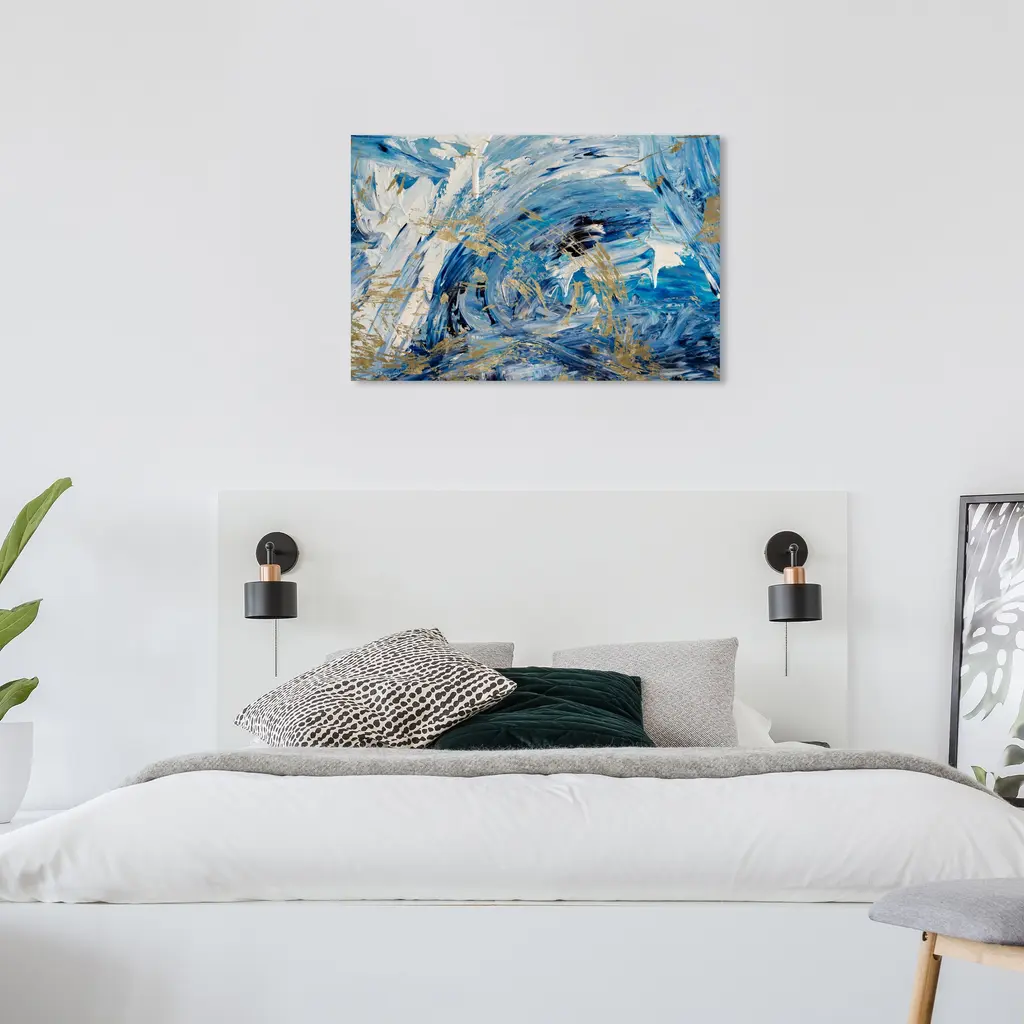 Invoke chromatic contemplation with this chic abstract wall art piece. Transform any room's wall into a beautiful focal point, through shape and color any space in your home or office will feel instantly alive. Manana y Mar, is a skillfully made Modern & Contemporary art piece by real artists. With an overarching Blue color, this fine art print by Wynwood Studio Canvas is the perfect finishing touch to your home décor theme. Features: This art piece has a horizontal orientation Abstract design with a Paint theme to bring you the perfect wall art Sustainable and forest friendly canvas print Professionally hand stretched in a 0.75 inch-thick sustainable wood frame Arrives ready to hang with pre-installed hooks for easy hanging. Nail and hanger also included Printed using ultra-premium and fade resistant inks to guarantee high definition and vivid colors Available in several size options Proudly made in the USA