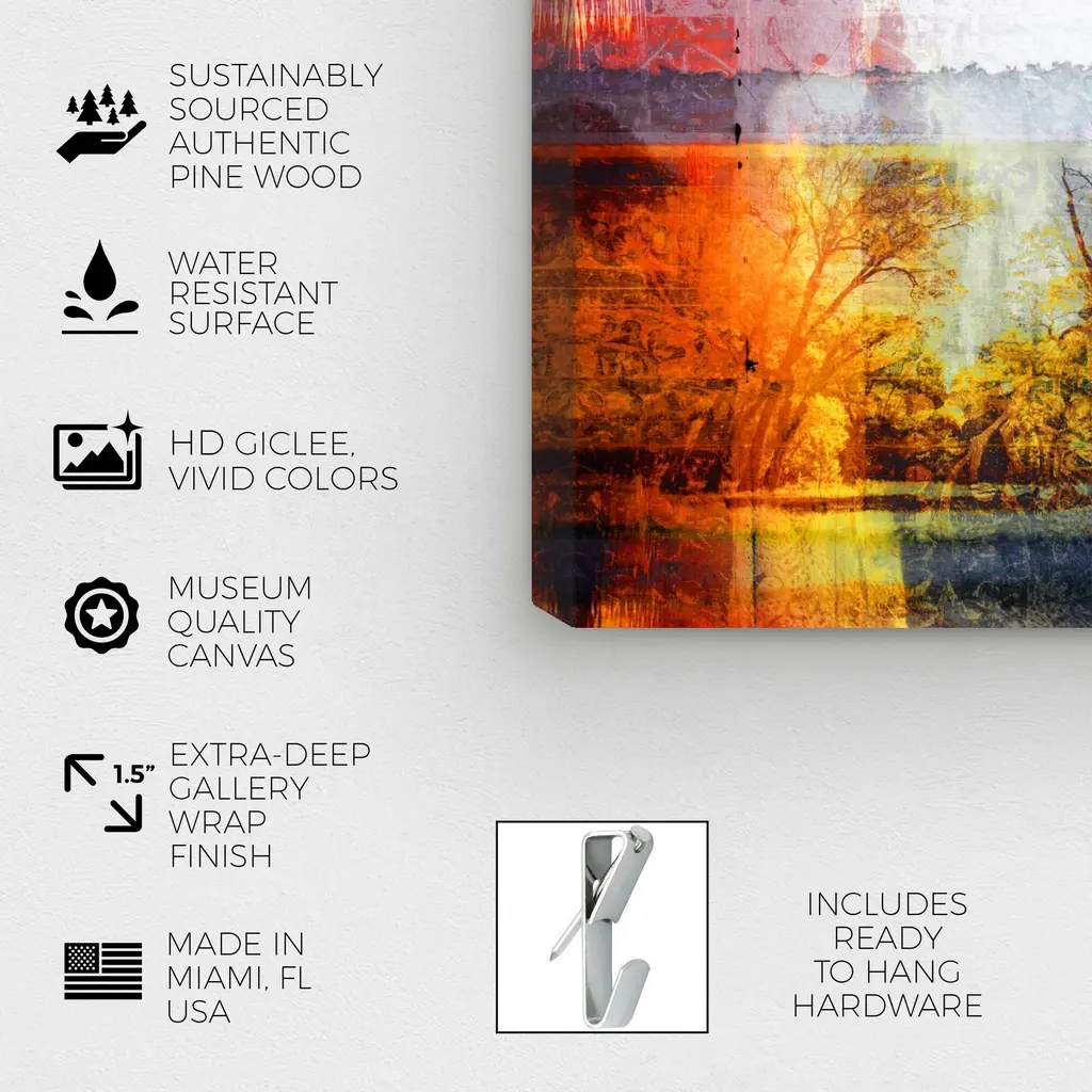 Modern Countryside, is a skillfully made Rustic art piece by real artists. With an overarching Orange color, this fine art print by Wynwood Studio Canvas is the perfect finishing touch to your home décor theme. Features: This art piece has a horizontal orientation Abstract design with a Textures theme to bring you the perfect wall art Sustainable and forest friendly canvas print Professionally hand stretched in a 0.75 inch-thick sustainable wood frame Arrives ready to hang with pre-installed hooks for easy hanging. Nail and hanger also included Printed using ultra-premium and fade resistant inks to guarantee high definition and vivid colors Available in several size options Proudly made in the USA