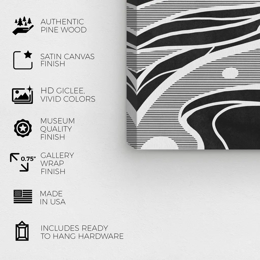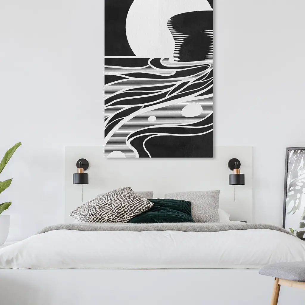 Give shape to any room with this geometric wall art piece. The Minimalist and Scandinavian style with polygons and patterns will bring dimension to your space and will line your walls with a sophisticated design. Moon lit Tide, is a skillfully made Mid-Century Modern art piece by real artists. With an overarching Black color, this fine art print by Wynwood Studio Canvas is the perfect finishing touch to your home décor theme. Features: This art piece has a horizontal orientation Abstract design with a Geometric theme to bring you the perfect wall art Sustainable and forest friendly canvas print Professionally hand stretched in a 0.75 inch-thick sustainable wood frame Arrives ready to hang with pre-installed hooks for easy hanging. Nail and hanger also included Printed using ultra-premium and fade resistant inks to guarantee high definition and vivid colors Available in several size options Proudly made in the USA