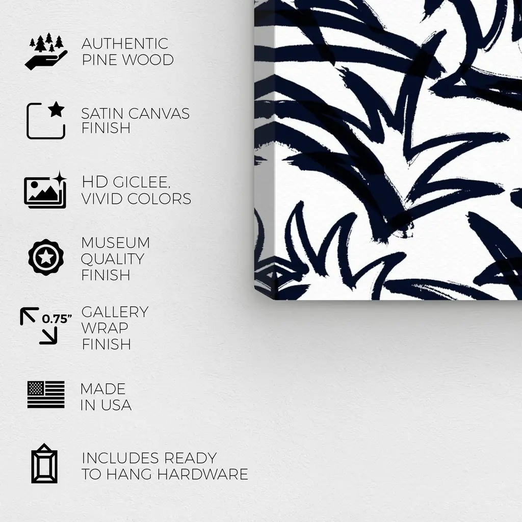 Navy Pinaple Leaf, is a skillfully made Modern & Contemporary art piece by real artists. With an overarching White color, this fine art print by Wynwood Studio Canvas is the perfect finishing touch to your home décor theme. Features: This art piece has a square orientation Abstract design with a Patterns theme to bring you the perfect wall art Sustainable and forest friendly canvas print Professionally hand stretched in a 0.75 inch-thick sustainable wood frame Arrives ready to hang with pre-installed hooks for easy hanging. Nail and hanger also included Printed using ultra-premium and fade resistant inks to guarantee high definition and vivid colors Available in several size options Proudly made in the USA