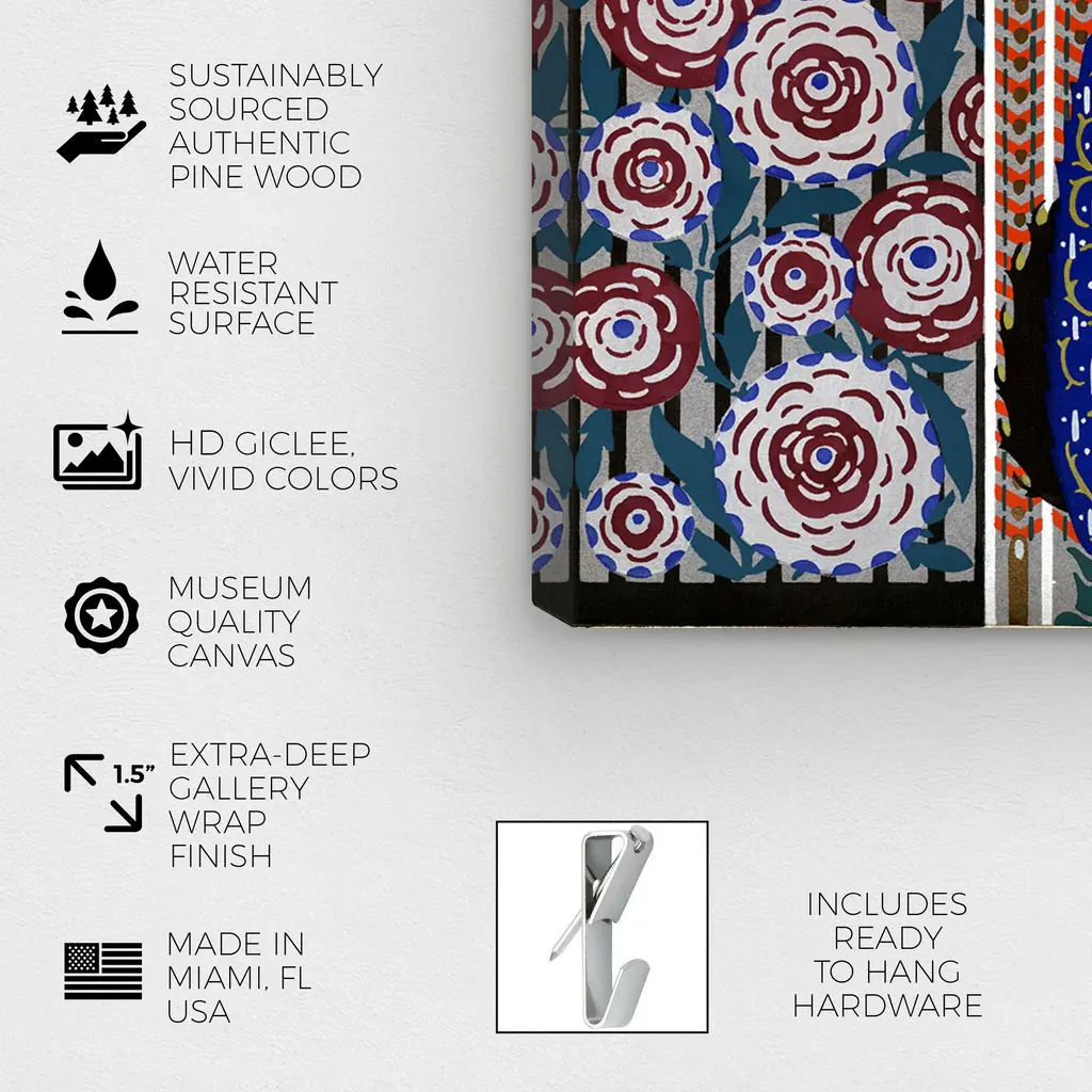 PORTAE ROSA, is a skillfully made Traditional art piece by real artists. With an overarching Blue color, this fine art print by Wynwood Studio Canvas is the perfect finishing touch to your home décor theme. Features: This art piece has a horizontal orientation Abstract design with a Patterns theme to bring you the perfect wall art Sustainable and forest friendly canvas print Professionally hand stretched in a 0.75 inch-thick sustainable wood frame Arrives ready to hang with pre-installed hooks for easy hanging. Nail and hanger also included Printed using ultra-premium and fade resistant inks to guarantee high definition and vivid colors Available in several size options Proudly made in the USA