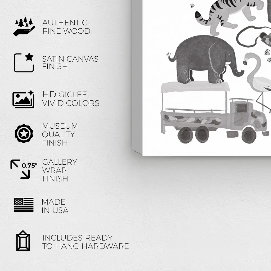 The perfect choice for wall decoration. Let your modern style run wild with this essential zoo and wild animal wall art piece. Curate your collection with creatures big and small. Lions, tigers, and bears will fill your bare walls with vivid colors and style.Animal Crackers, is a skillfully made Modern & Contemporary art piece by real artists. With an overarching Grey color, this fine art print by Wynwood Studio Canvas is the perfect finishing touch to your home décor theme. Features: This art piece has a vertical orientation Animals design with a Zoo and Wild Animals theme to bring you the perfect wall art Sustainable and forest friendly canvas print Professionally hand stretched in a 0.75 inch-thick sustainable wood frame Arrives ready to hang with pre-installed hooks for easy hanging. Nail and hanger also included Printed using ultra-premium and fade resistant inks to guarantee high definition and vivid colors Available in several size options Proudly made in the USA