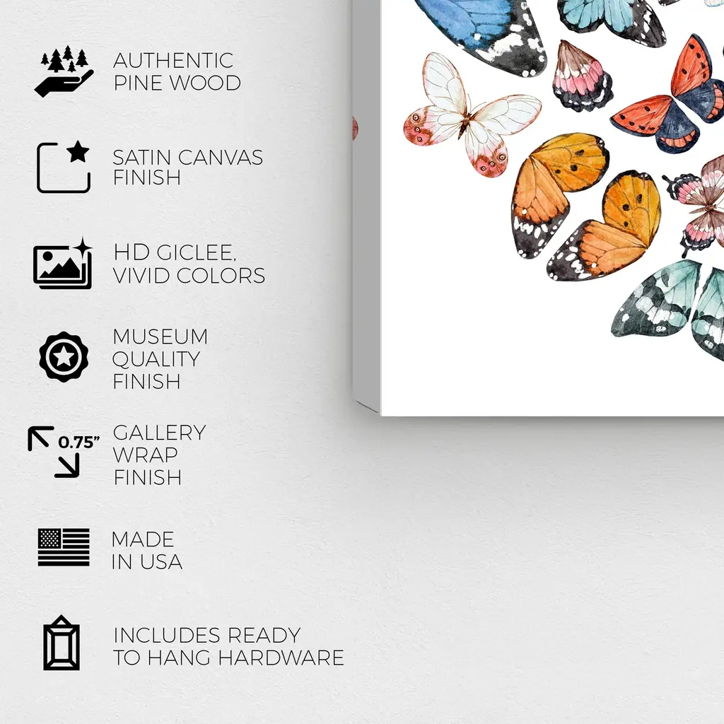 Butterfly K Color, is a skillfully made Rustic art piece by real artists. With an overarching Orange color, this fine art print by Wynwood Studio Canvas is the perfect finishing touch to your home décor theme. Features: This art piece has a square orientation Animals design with a Insects theme to bring you the perfect wall art Sustainable and forest friendly canvas print Professionally hand stretched in a 0.75 inch-thick sustainable wood frame Arrives ready to hang with pre-installed hooks for easy hanging. Nail and hanger also included Printed using ultra-premium and fade resistant inks to guarantee high definition and vivid colors Available in several size options Proudly made in the USA