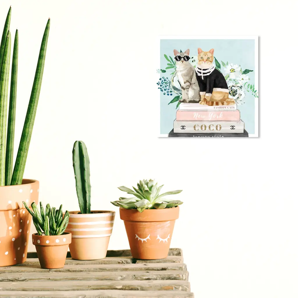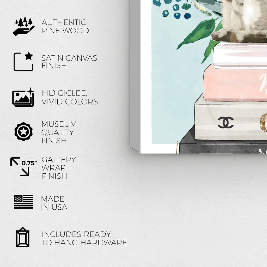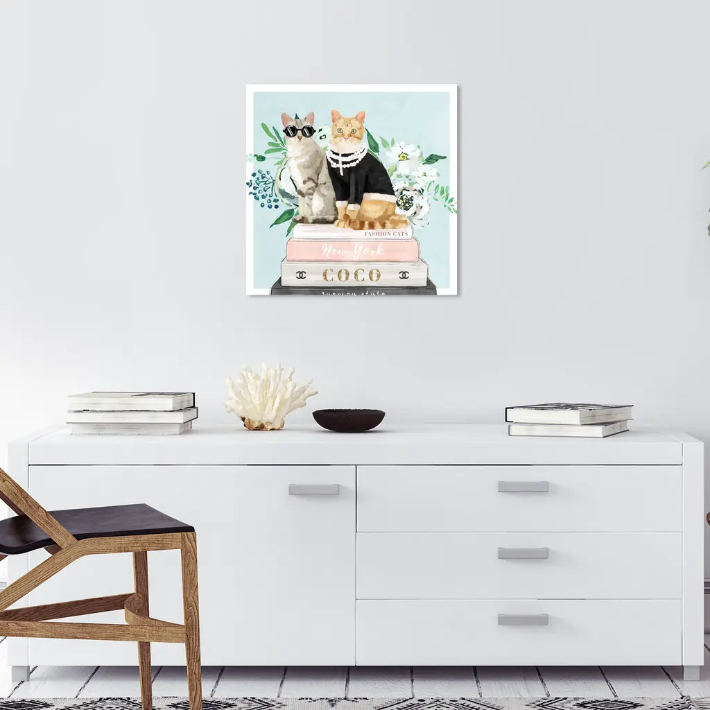 Your walls will roar to life with this cat and kitties wall art piece. Soft and sophisticated, these fashionable felines will fill any space with style. Get your paws on this essential piece. Cat Fashion Books, is a skillfully made Glam art piece by real artists. With an overarching Blue color, this fine art print by Wynwood Studio Canvas is the perfect finishing touch to your home décor theme. Features: This art piece has a square orientation Animals design with a Cats and Kitties theme to bring you the perfect wall art Sustainable and forest friendly canvas print Professionally hand stretched in a 0.75 inch-thick sustainable wood frame Arrives ready to hang with pre-installed hooks for easy hanging. Nail and hanger also included Printed using ultra-premium and fade resistant inks to guarantee high definition and vivid colors Available in several size options Proudly made in the USA