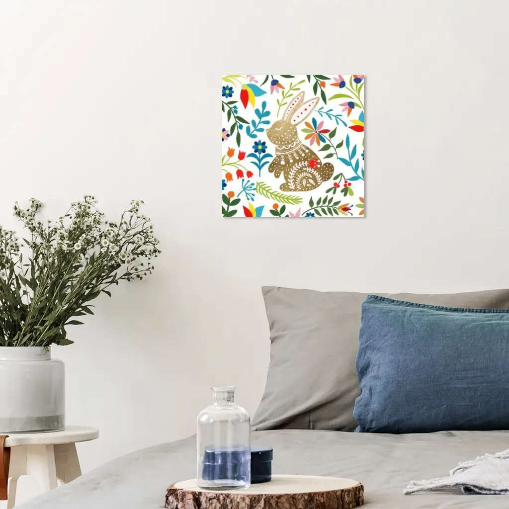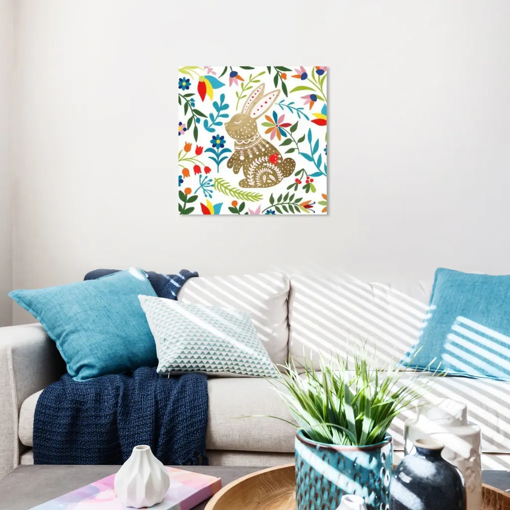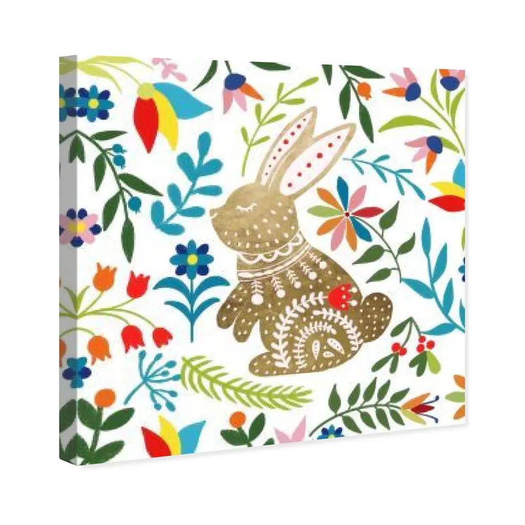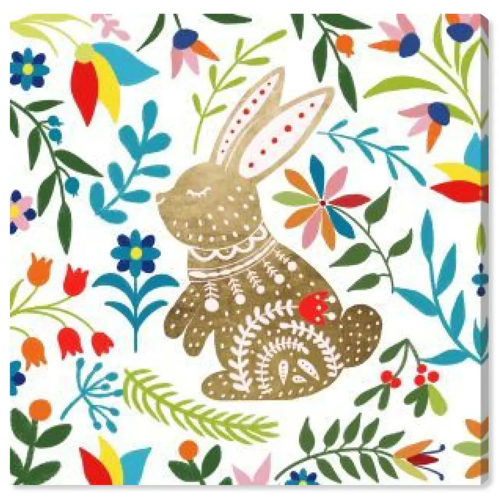 Colorful Golden Bunny, is a skillfully made Scandinavian art piece by real artists. With an overarching Gold color, this fine art print by Wynwood Studio Canvas is the perfect finishing touch to your home décor theme. Features: This art piece has a square orientation Animals design with a Farm Animals theme to bring you the perfect wall art Sustainable and forest friendly canvas print Professionally hand stretched in a 0.75 inch-thick sustainable wood frame Arrives ready to hang with pre-installed hooks for easy hanging. Nail and hanger also included Printed using ultra-premium and fade resistant inks to guarantee high definition and vivid colors Available in several size options Proudly made in the USA