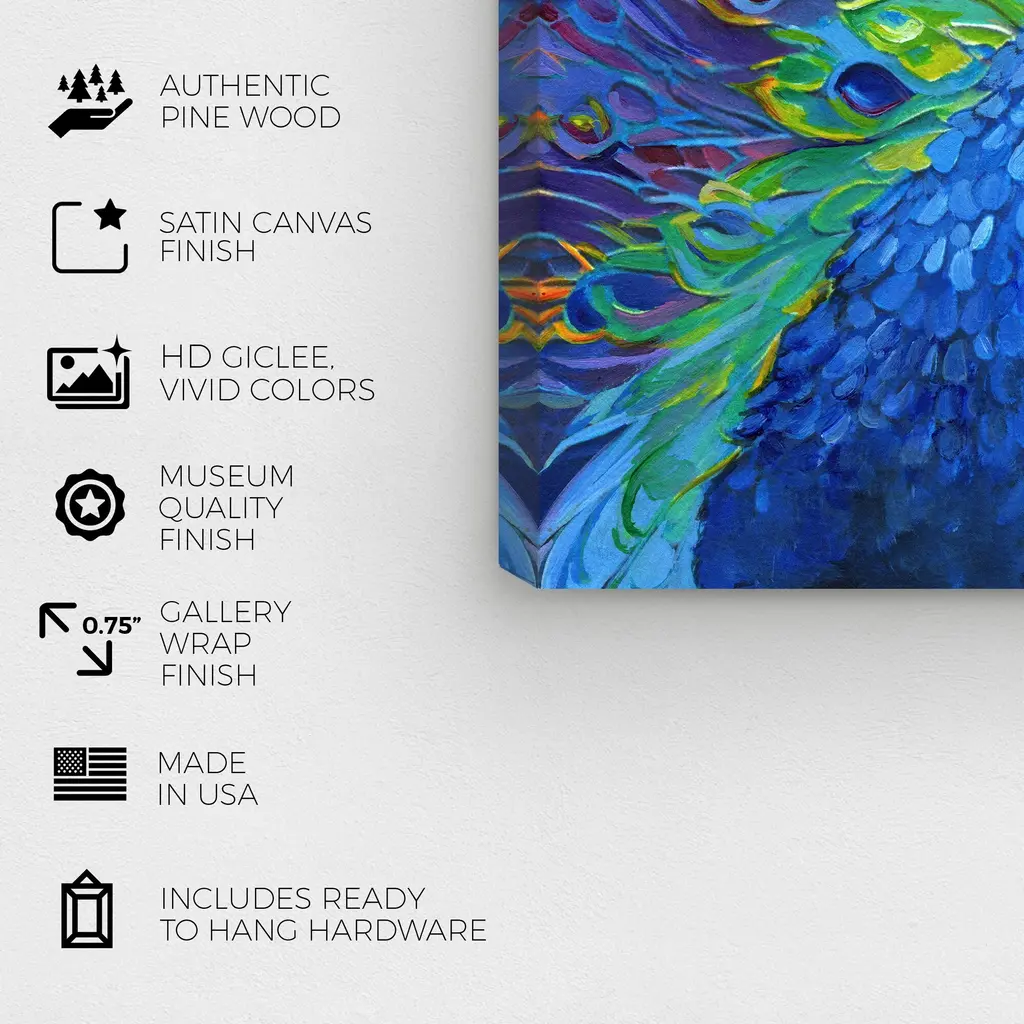 Doll Memories - Blue Peacock, is a skillfully made Modern & Contemporary art piece by real artists. With an overarching Blue color, this fine art print by Wynwood Studio Canvas is the perfect finishing touch to your home décor theme. Features: This art piece has a square orientation Animals design with a Birds theme to bring you the perfect wall art Sustainable and forest friendly canvas print Professionally hand stretched in a 0.75 inch-thick sustainable wood frame Arrives ready to hang with pre-installed hooks for easy hanging. Nail and hanger also included Printed using ultra-premium and fade resistant inks to guarantee high definition and vivid colors Available in several size options Proudly made in the USA