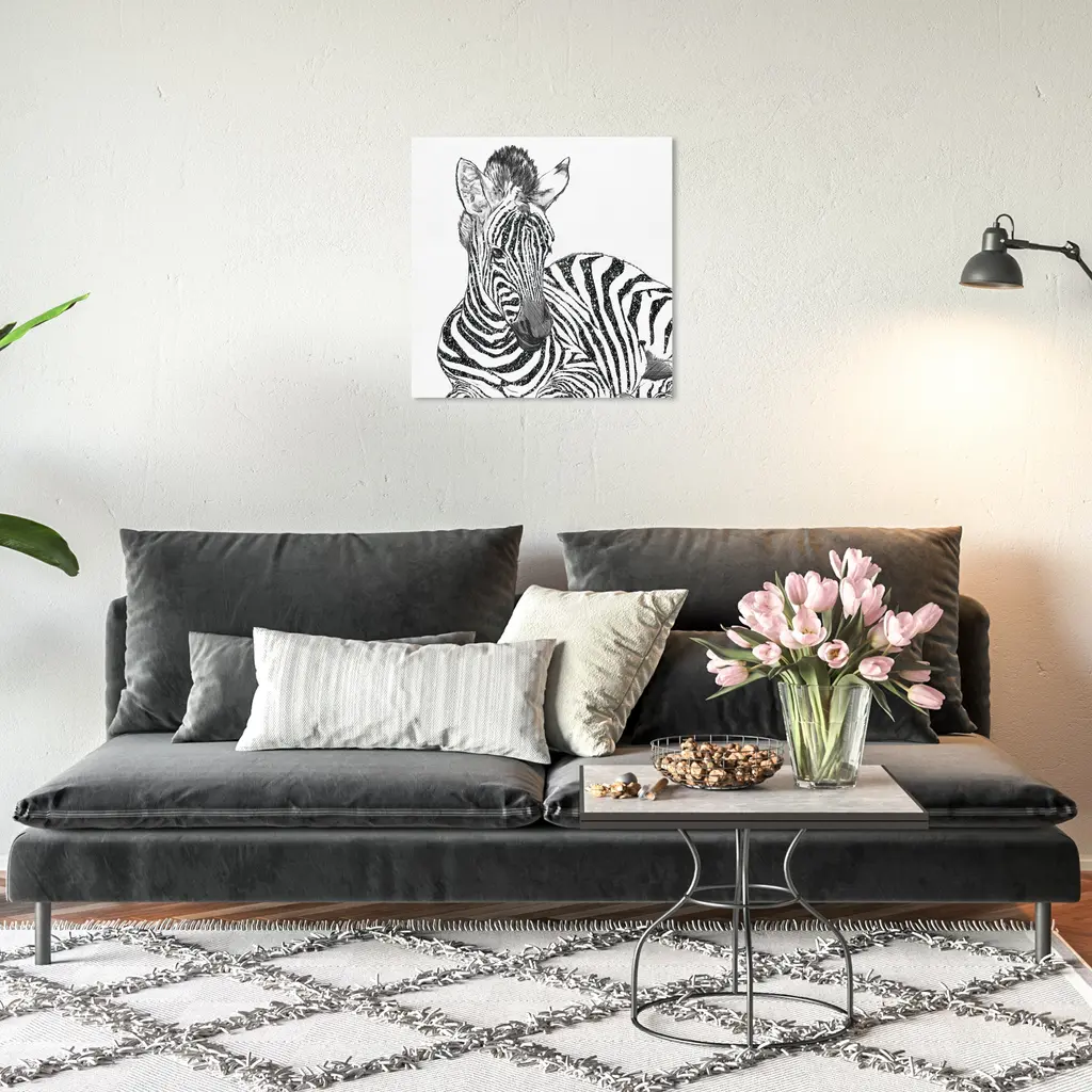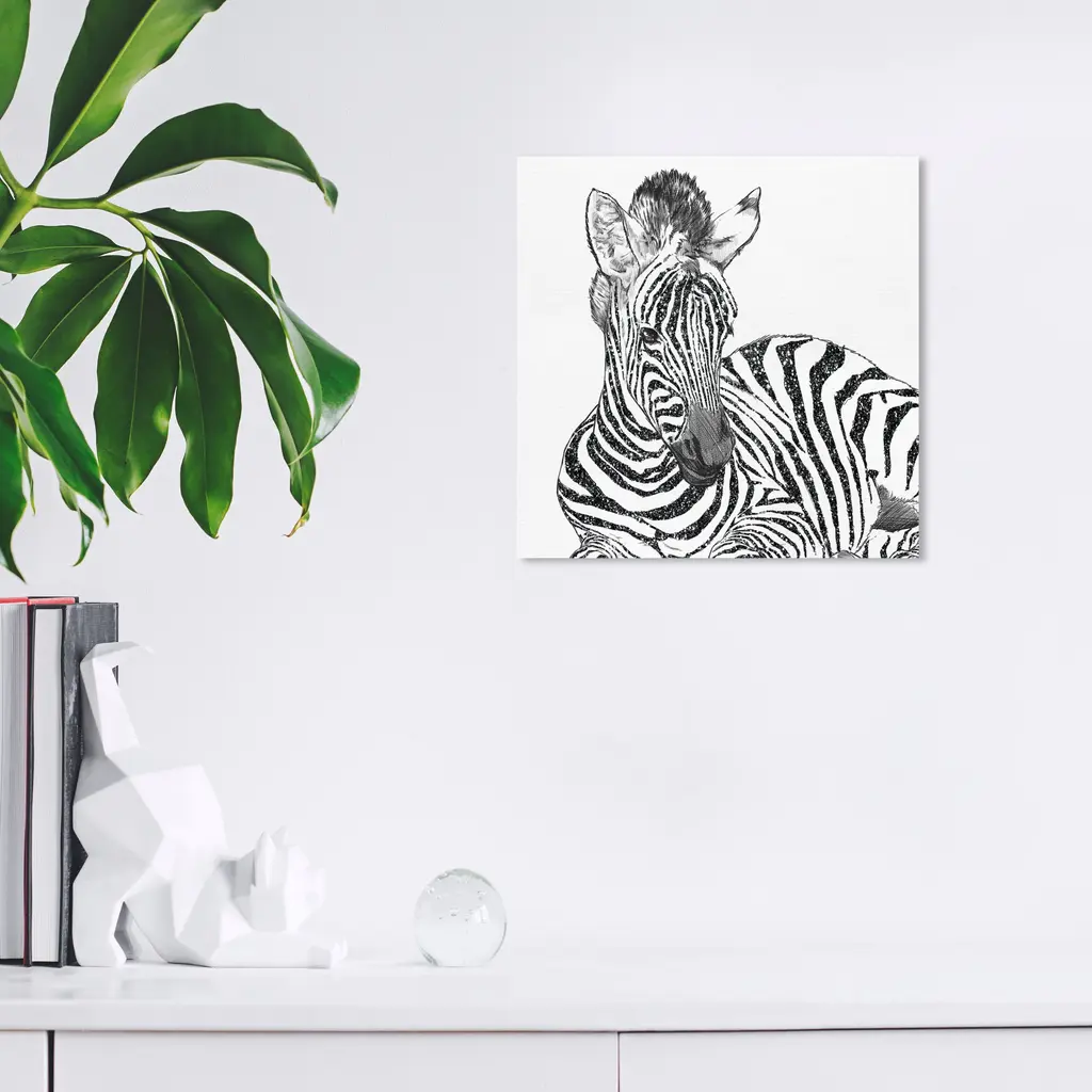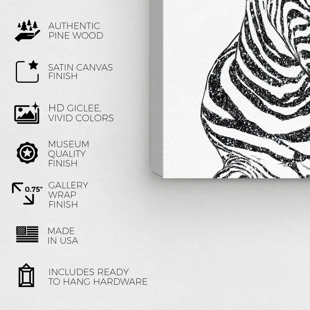 Glitter Stripes Zebra Black, is a skillfully made Modern & Contemporary art piece by real artists. With an overarching Black color, this fine art print by Wynwood Studio Canvas is the perfect finishing touch to your home décor theme. Features: This art piece has a square orientation Animals design with a Zoo and Wild Animals theme to bring you the perfect wall art Sustainable and forest friendly canvas print Professionally hand stretched in a 0.75 inch-thick sustainable wood frame Arrives ready to hang with pre-installed hooks for easy hanging. Nail and hanger also included Printed using ultra-premium and fade resistant inks to guarantee high definition and vivid colors Available in several size options Proudly made in the USA