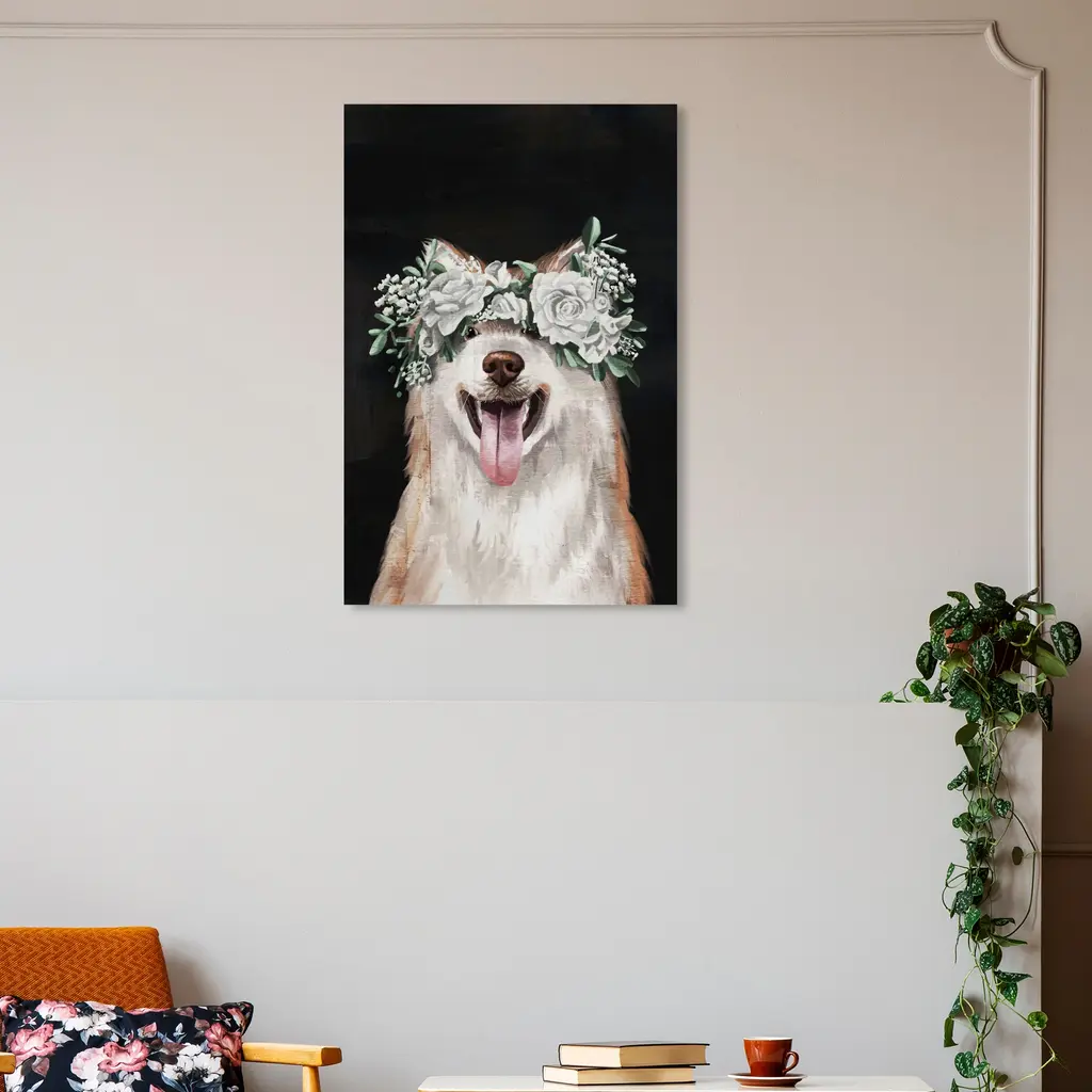 Bring home your new best friend with this dog and puppy wall art piece. Whether you love corgis, French bulldogs, or dalmatians, these playful pieces will fill any space with warmth. Unleash the unexpected in your home or office.Gorgeous Floral Dog, is a skillfully made Rustic art piece by real artists. With an overarching White color, this fine art print by Wynwood Studio Canvas is the perfect finishing touch to your home décor theme. Features: This art piece has a vertical orientation Animals design with a Dogs and Puppies theme to bring you the perfect wall art Sustainable and forest friendly canvas print Professionally hand stretched in a 0.75 inch-thick sustainable wood frame Arrives ready to hang with pre-installed hooks for easy hanging. Nail and hanger also included Printed using ultra-premium and fade resistant inks to guarantee high definition and vivid colors Available in several size options Proudly made in the USA