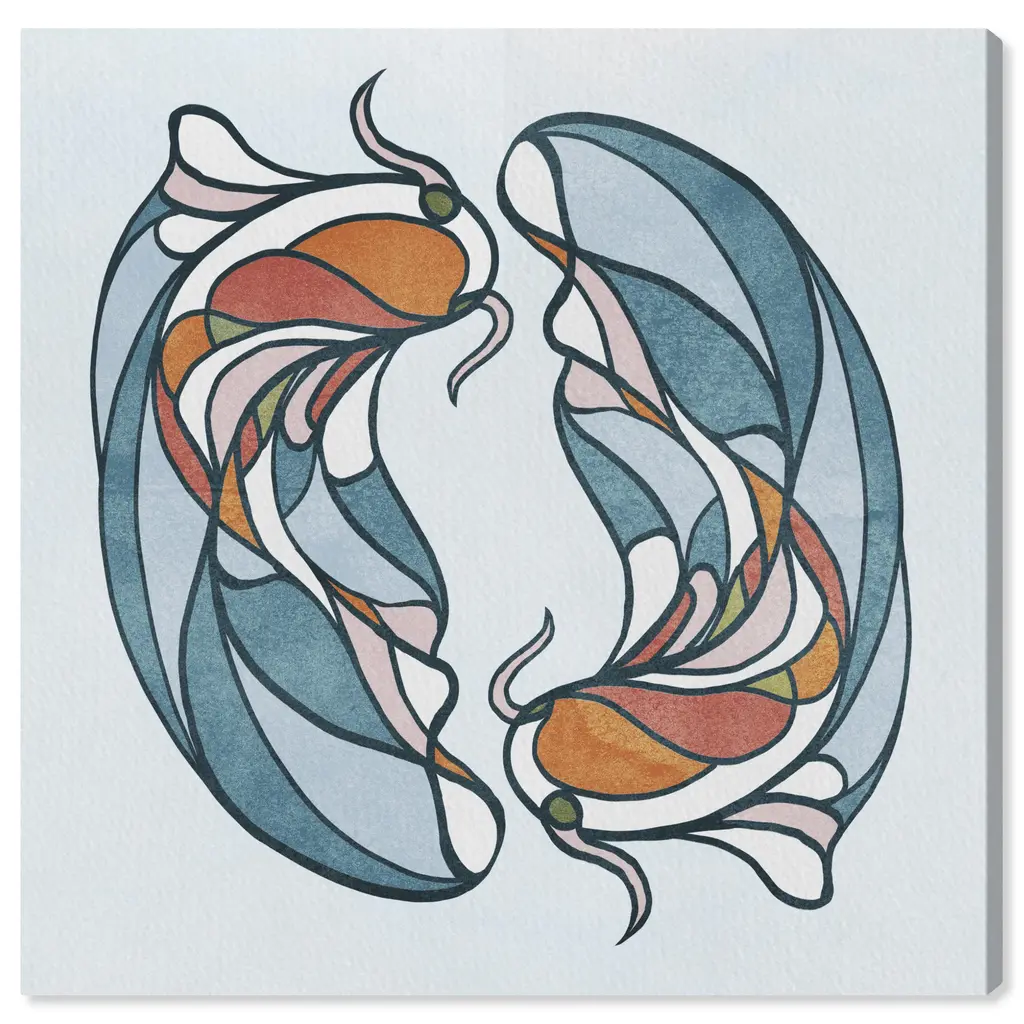 Wynwood Studio Canvas Animals Koy Circles Blue and Amber Nautical & Coastal Wall Art Canvas Print