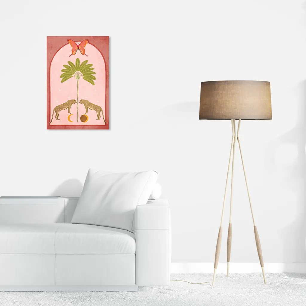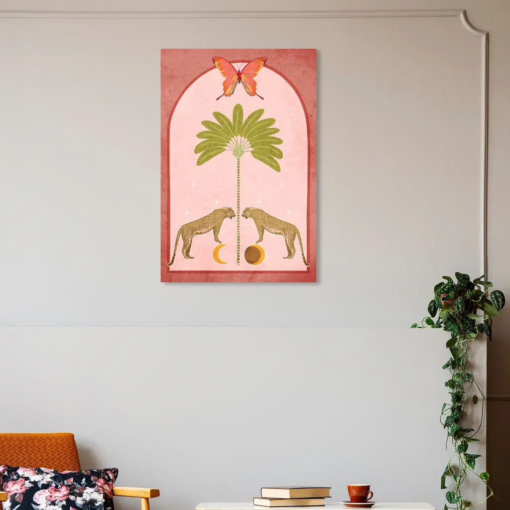 Magical Twin Leopards, is a skillfully made Modern & Contemporary art piece by real artists. With an overarching Pink color, this fine art print by Wynwood Studio Canvas is the perfect finishing touch to your home décor theme. Features: This art piece has a vertical orientation Animals design with a Felines theme to bring you the perfect wall art Sustainable and forest friendly canvas print Professionally hand stretched in a 0.75 inch-thick sustainable wood frame Arrives ready to hang with pre-installed hooks for easy hanging. Nail and hanger also included Printed using ultra-premium and fade resistant inks to guarantee high definition and vivid colors Available in several size options Proudly made in the USA