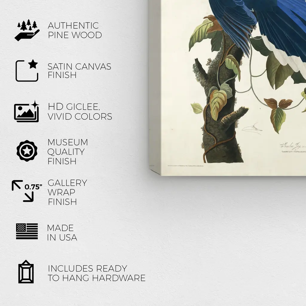 Robert Havell - Columbia Jay, is a skillfully made Traditional art piece by real artists. With an overarching Blue color, this fine art print by Wynwood Studio Canvas is the perfect finishing touch to your home décor theme. Features: This art piece has a vertical orientation Animals design with a Birds theme to bring you the perfect wall art Sustainable and forest friendly canvas print Professionally hand stretched in a 0.75 inch-thick sustainable wood frame Arrives ready to hang with pre-installed hooks for easy hanging. Nail and hanger also included Printed using ultra-premium and fade resistant inks to guarantee high definition and vivid colors Available in several size options Proudly made in the USA
