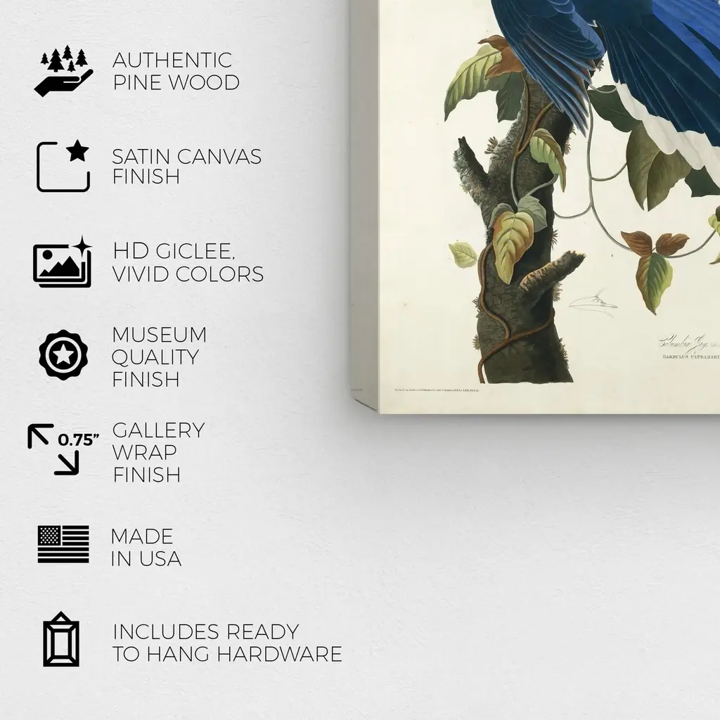 Robert Havell - Columbia Jay, is a skillfully made Traditional art piece by real artists. With an overarching Blue color, this fine art print by Wynwood Studio Canvas is the perfect finishing touch to your home décor theme. Features: This art piece has a vertical orientation Animals design with a Birds theme to bring you the perfect wall art Sustainable and forest friendly canvas print Professionally hand stretched in a 0.75 inch-thick sustainable wood frame Arrives ready to hang with pre-installed hooks for easy hanging. Nail and hanger also included Printed using ultra-premium and fade resistant inks to guarantee high definition and vivid colors Available in several size options Proudly made in the USA
