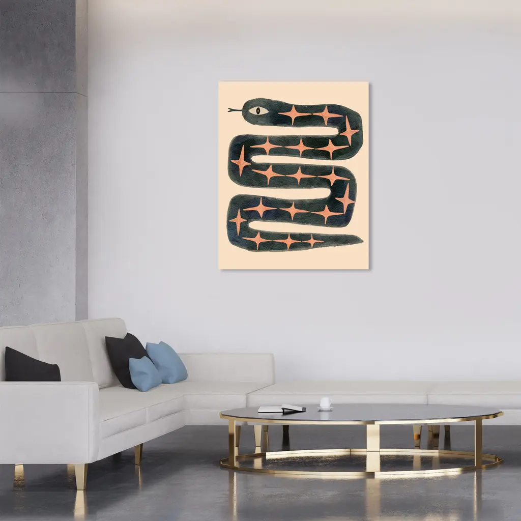 The perfect choice for wall decoration. Let your modern style run wild with this essential zoo and wild animal wall art piece. Curate your collection with creatures big and small. Lions, tigers, and bears will fill your bare walls with vivid colors and style.Serpentine Stars, is a skillfully made Bohemian & Eclectic art piece by real artists. With an overarching Orange color, this fine art print by Wynwood Studio Canvas is the perfect finishing touch to your home décor theme. Features: This art piece has a vertical orientation Animals design with a Zoo and Wild Animals theme to bring you the perfect wall art Sustainable and forest friendly canvas print Professionally hand stretched in a 0.75 inch-thick sustainable wood frame Arrives ready to hang with pre-installed hooks for easy hanging. Nail and hanger also included Printed using ultra-premium and fade resistant inks to guarantee high definition and vivid colors Available in several size options Proudly made in the USA