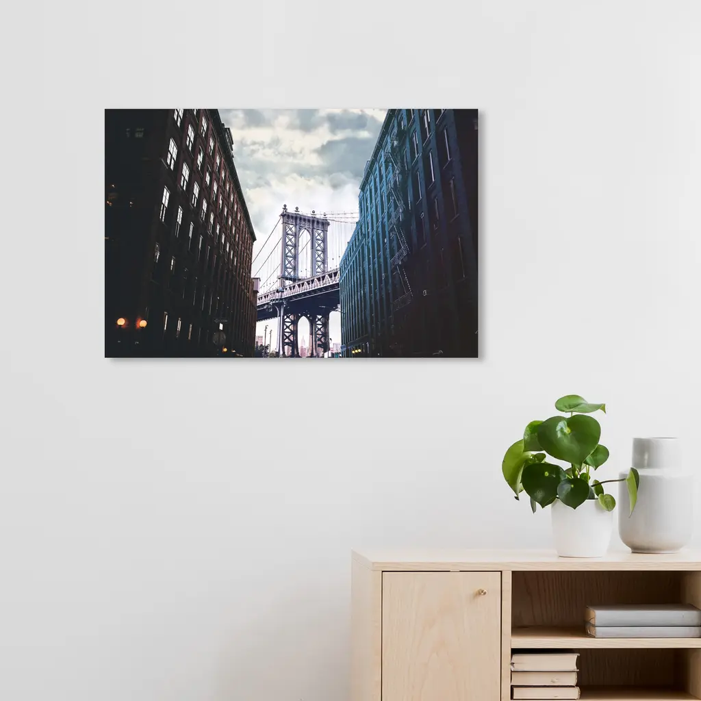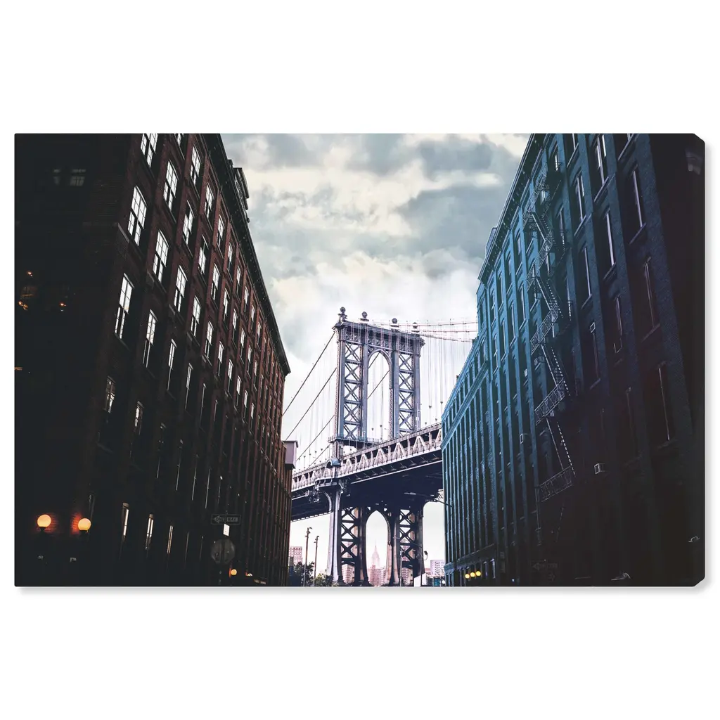 Dumbo Brooklyn, is a skillfully made Modern & Contemporary art piece by real artists. With an overarching Blue color, this fine art print by Wynwood Studio Canvas is the perfect finishing touch to your home décor theme. Features: This art piece has a horizontal orientation Architecture design with a Famous Bridges theme to bring you the perfect wall art Sustainable and forest friendly canvas print Professionally hand stretched in a 0.75 inch-thick sustainable wood frame Arrives ready to hang with pre-installed hooks for easy hanging. Nail and hanger also included Printed using ultra-premium and fade resistant inks to guarantee high definition and vivid colors Available in several size options Proudly made in the USA