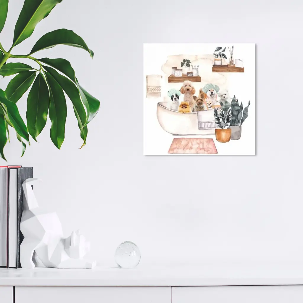 Wynwood Studio Canvas Bath And Laundry Dog Bath Tub White And Cream White Modern & Contemporary Wall Art Canvas Print - 20 X 20
