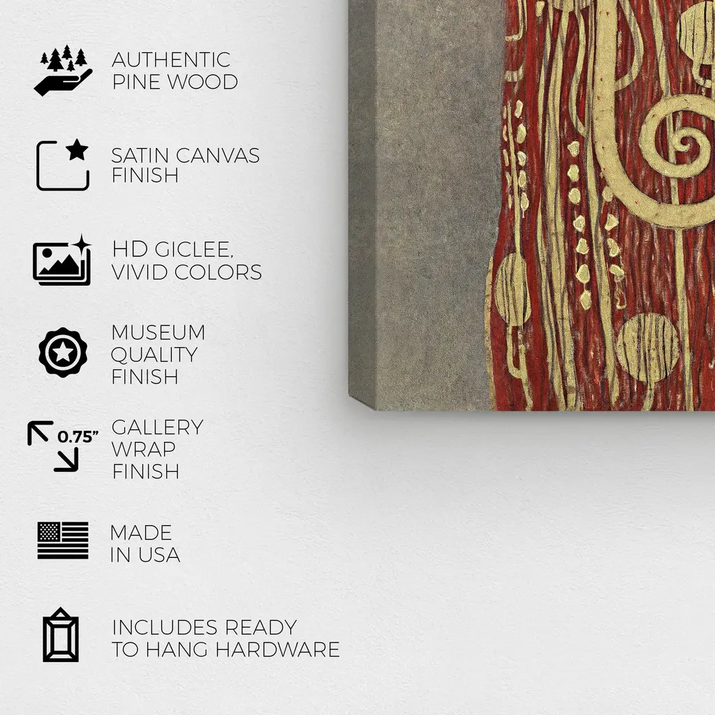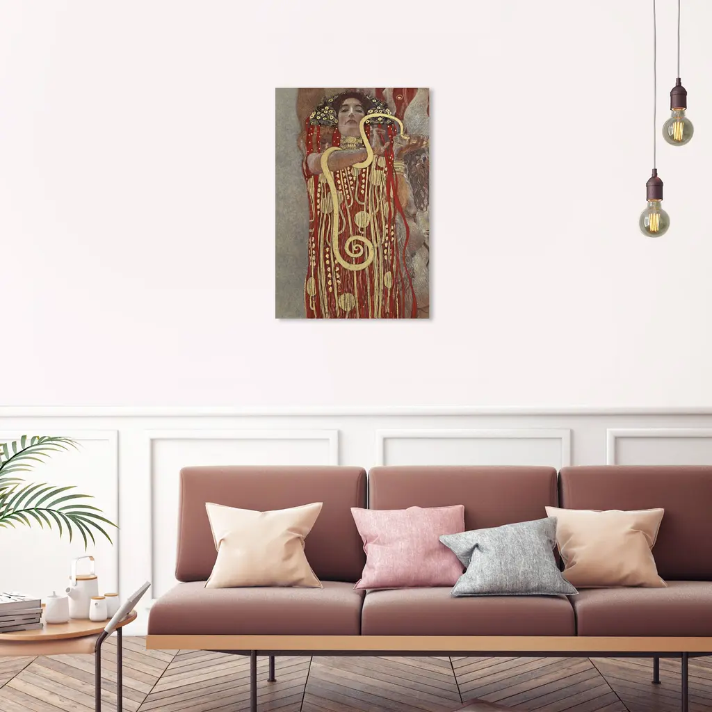 Timeless meets elegance in this classic and figurative wall art piece. Let your gallery wall come alive with traditional, iconic art composition. Add a chic and sophisticated style to any space in your home or office.Gustav Klimt - Hygieia, is a skillfully made Glam art piece by real artists. With an overarching Gold color, this fine art print by Wynwood Studio Canvas is the perfect finishing touch to your home décor theme. Features: This art piece has a vertical orientation Figurative design with a Lifestyle theme to bring you the perfect wall art Sustainable and forest friendly canvas print Professionally hand stretched in a 0.75 inch-thick sustainable wood frame Arrives ready to hang with pre-installed hooks for easy hanging. Nail and hanger also included Printed using ultra-premium and fade resistant inks to guarantee high definition and vivid colors Available in several size options Proudly made in the USA