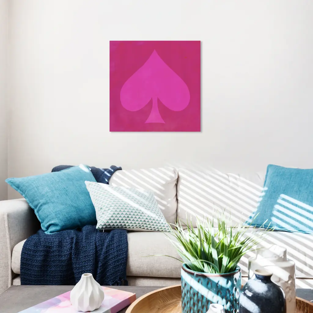 The Spade Deux, is a skillfully made Modern & Contemporary art piece by real artists. With an overarching Pink color, this fine art print by Wynwood Studio Canvas is the perfect finishing touch to your home décor theme. Features: This art piece has a square orientation Performing Arts design with a Playing Cards theme to bring you the perfect wall art Sustainable and forest friendly canvas print Professionally hand stretched in a 0.75 inch-thick sustainable wood frame Arrives ready to hang with pre-installed hooks for easy hanging. Nail and hanger also included Printed using ultra-premium and fade resistant inks to guarantee high definition and vivid colors Available in several size options Proudly made in the USA