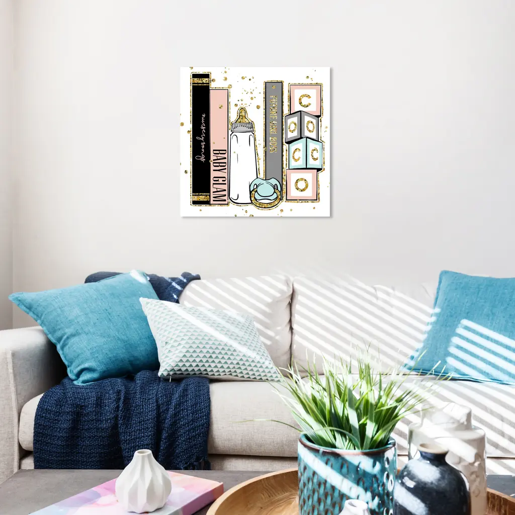 Baby Glam Books Square Blush, is a skillfully made Glam art piece by real artists. With an overarching Pink color, this fine art print by Wynwood Studio Canvas is the perfect finishing touch to your home décor theme. Features: This art piece has a square orientation Fashion design with a Books theme to bring you the perfect wall art Sustainable and forest friendly canvas print Professionally hand stretched in a 0.75 inch-thick sustainable wood frame Arrives ready to hang with pre-installed hooks for easy hanging. Nail and hanger also included Printed using ultra-premium and fade resistant inks to guarantee high definition and vivid colors Available in several size options Proudly made in the USA