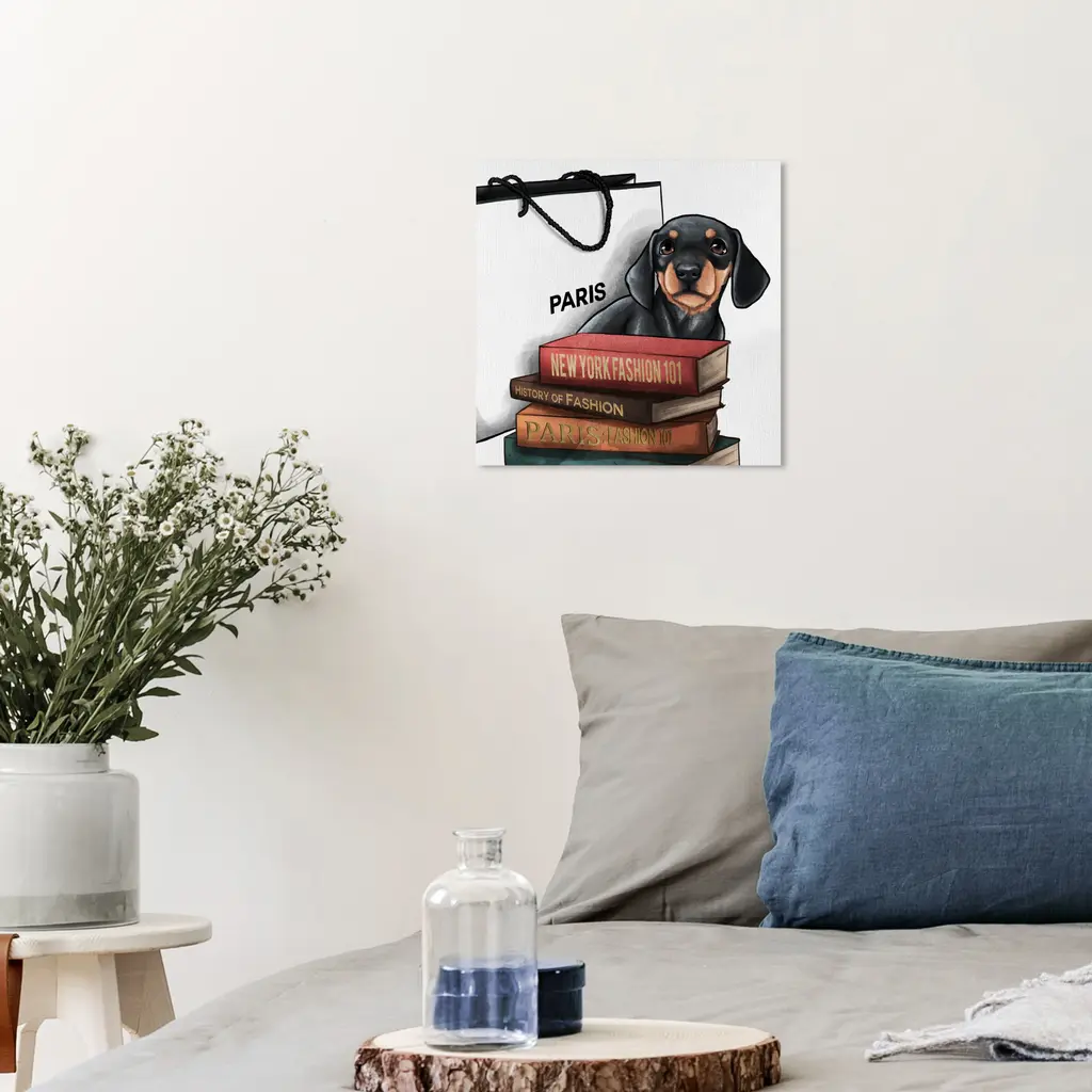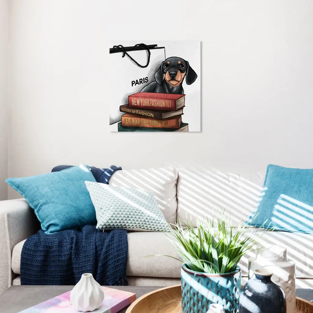 Fashion Books Dachshund, is a skillfully made Glam art piece by real artists. With an overarching Black color, this fine art print by Wynwood Studio Canvas is the perfect finishing touch to your home décor theme. Features: This art piece has a square orientation Fashion design with a Books theme to bring you the perfect wall art Sustainable and forest friendly canvas print Professionally hand stretched in a 0.75 inch-thick sustainable wood frame Arrives ready to hang with pre-installed hooks for easy hanging. Nail and hanger also included Printed using ultra-premium and fade resistant inks to guarantee high definition and vivid colors Available in several size options Proudly made in the USA