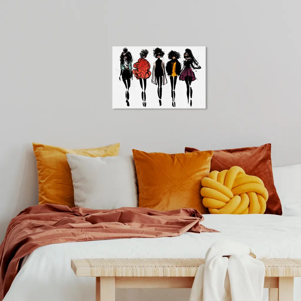 Girls of Color Line Up, is a skillfully made Modern & Contemporary art piece by real artists. With an overarching Black color, this fine art print by Wynwood Studio Canvas is the perfect finishing touch to your home décor theme. Features: This art piece has a horizontal orientation Fashion design with a Runway theme to bring you the perfect wall art Sustainable and forest friendly canvas print Professionally hand stretched in a 0.75 inch-thick sustainable wood frame Arrives ready to hang with pre-installed hooks for easy hanging. Nail and hanger also included Printed using ultra-premium and fade resistant inks to guarantee high definition and vivid colors Available in several size options Proudly made in the USA
